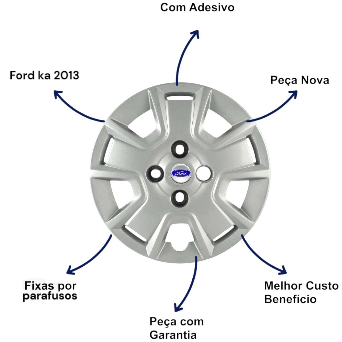 Jogo Calota Aro 14 Ford KA 2013 Cubo Baixo Parafusada GRID