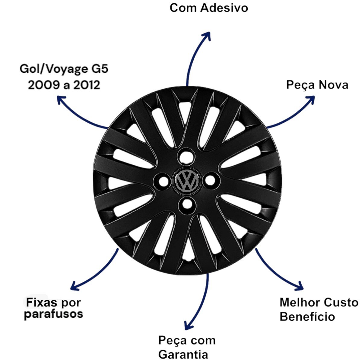 Jogo Calota Aro 14 Gol G5 2009 Preto Cubo Padrão