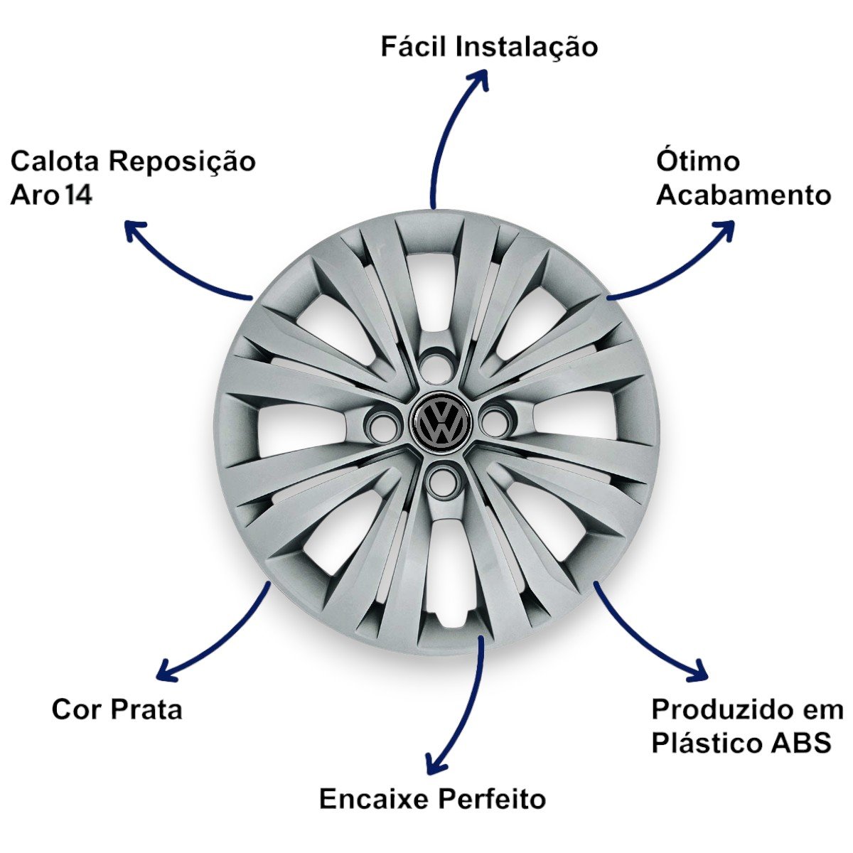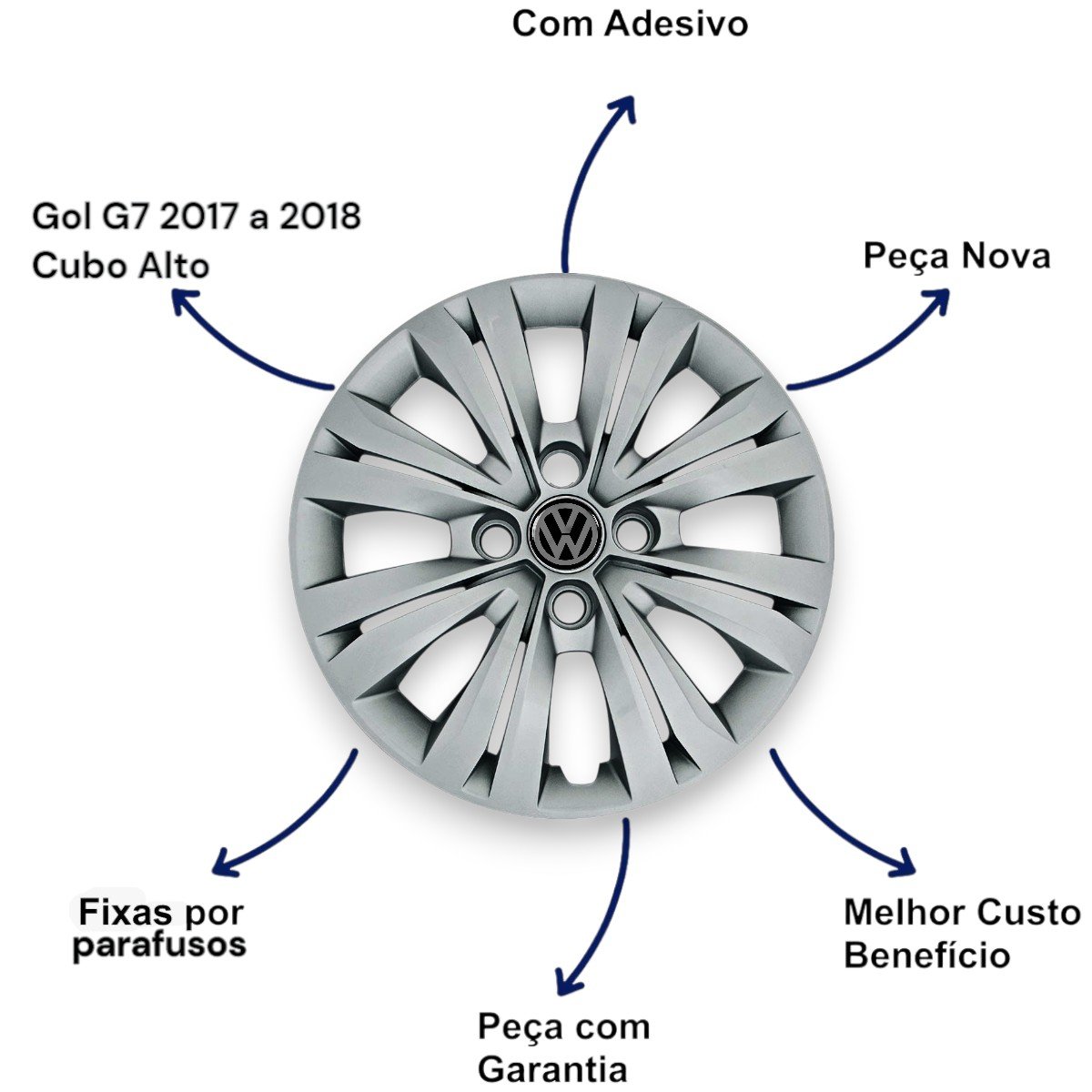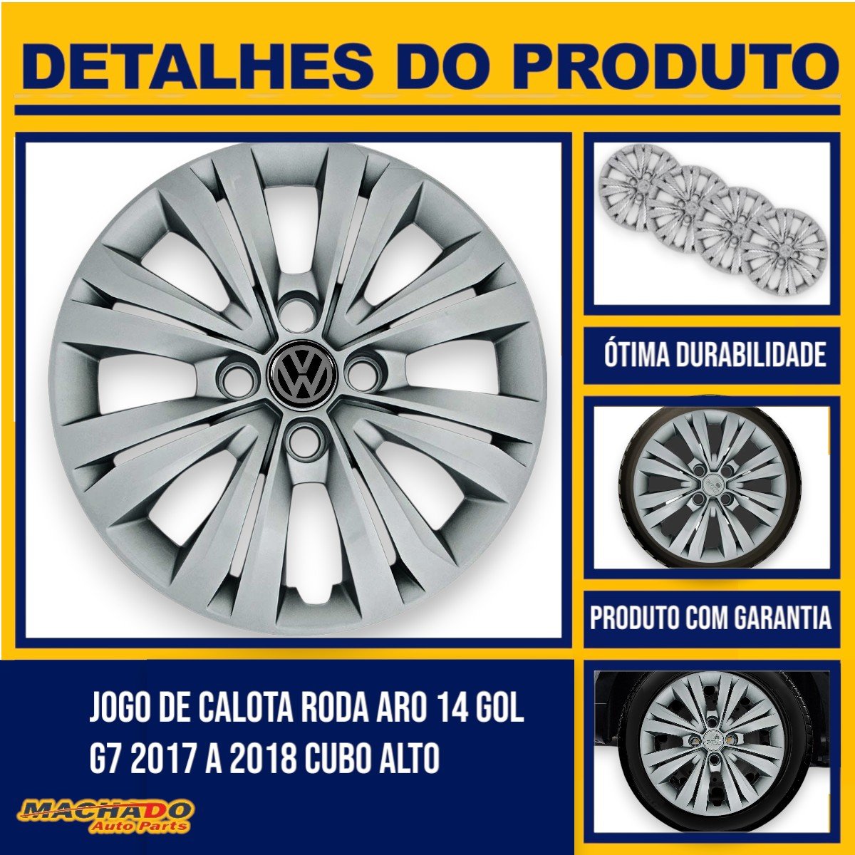 Jogo Calota Aro 14 Volkswagem Gol G7 2017 2018 Cubo Alto Parafusada GRID