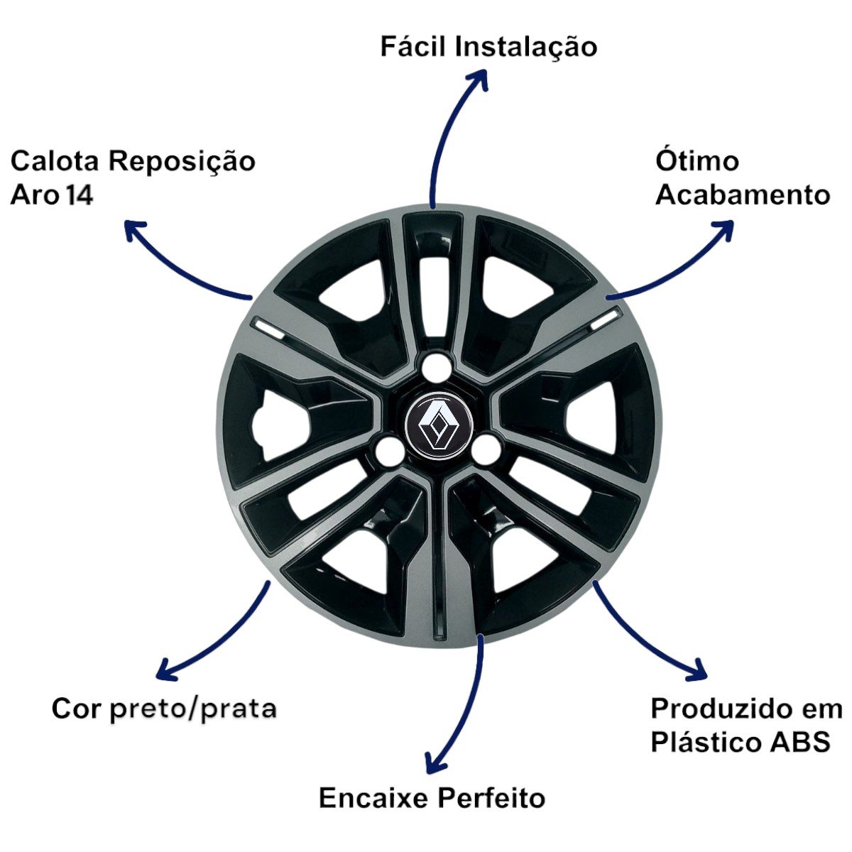 Jogo Calota Aro 14 Kwid 2023 Preta Prata