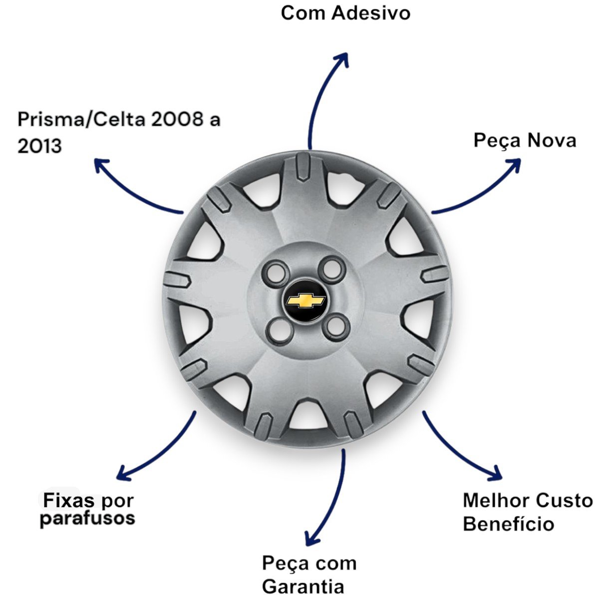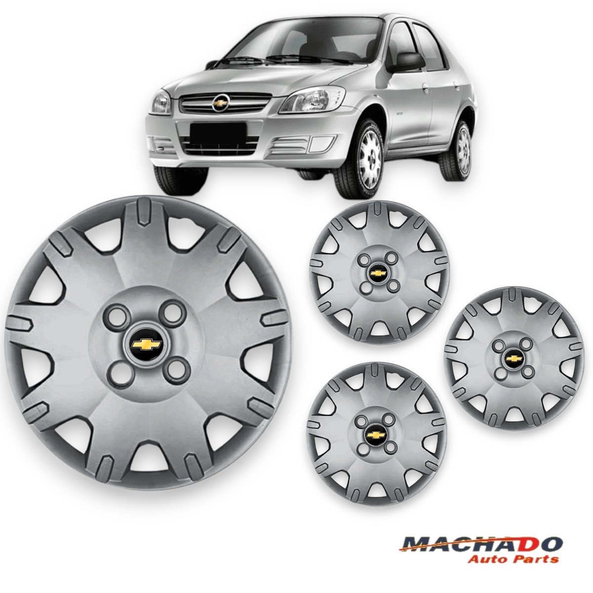 Jogo Calota Aro 14 Chevrolet Prisma Celta 2008 Até 2013 Cubo Baixo Parafusada GRID