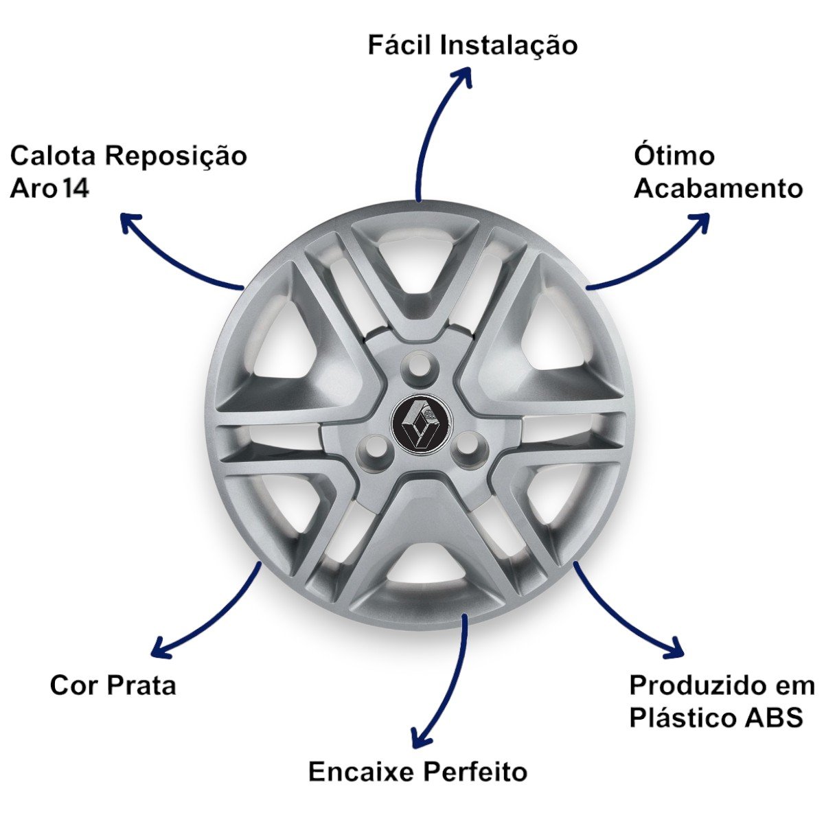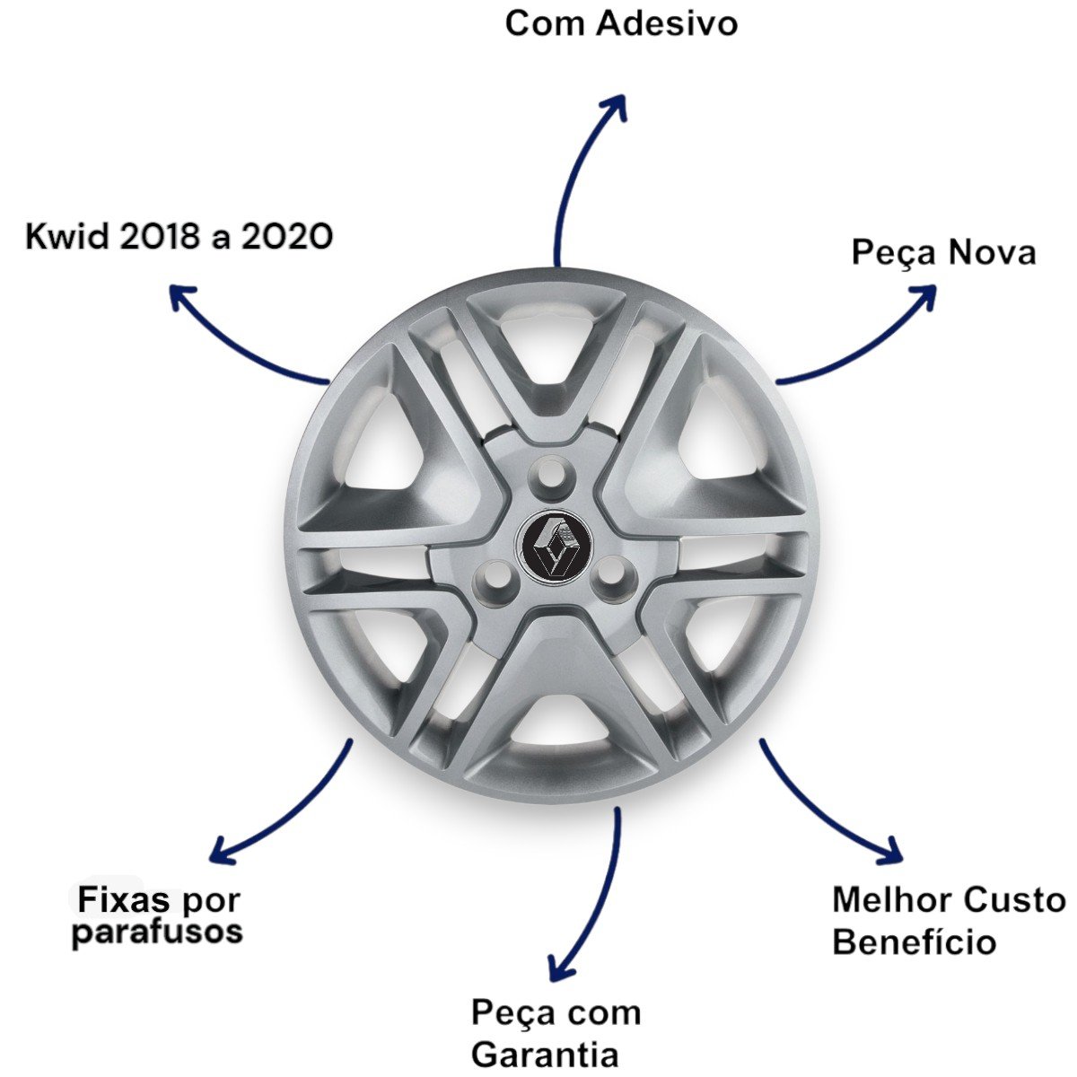 Jogo Calota Aro 14 Renault Kwid 2018 Até 2020 Cubo Padrão Parafusada