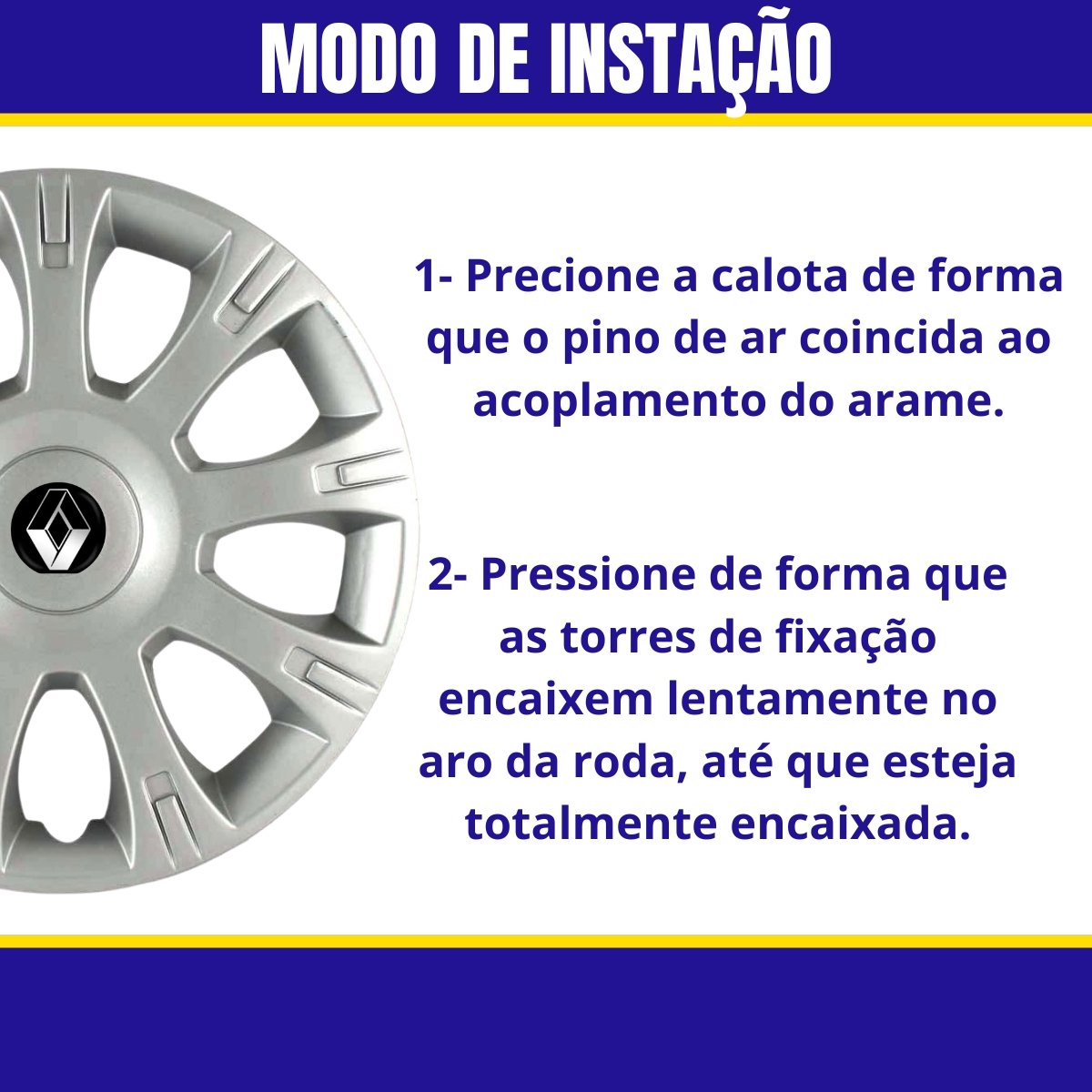 Jogo Calota Aro 14 Renault Sandero Logan Clio 2009 Até 2014 Pressão GRID
