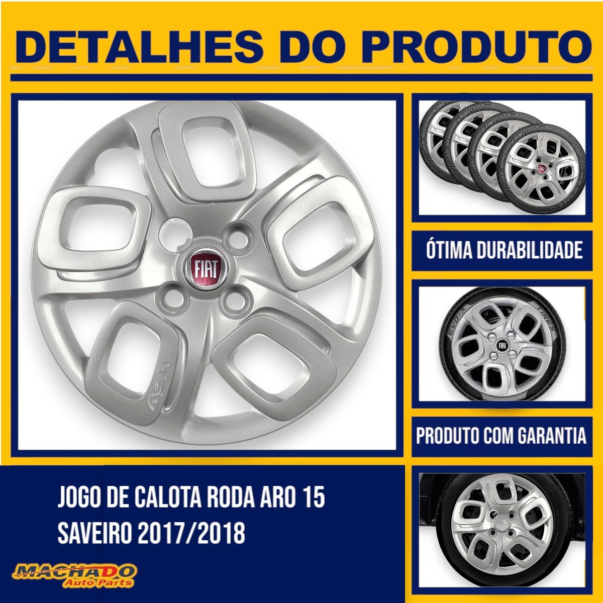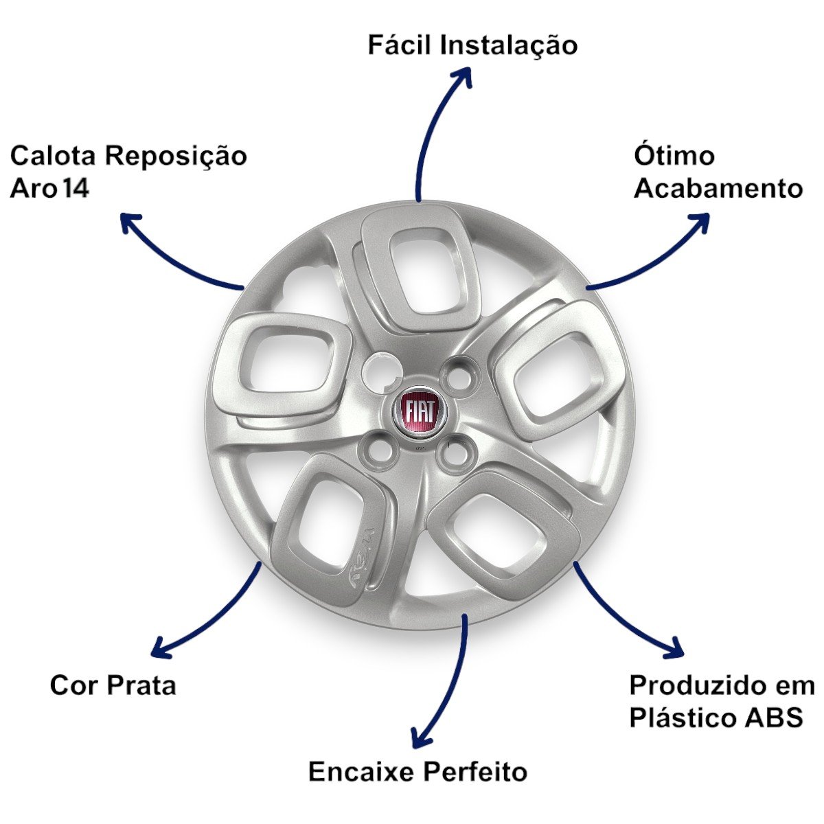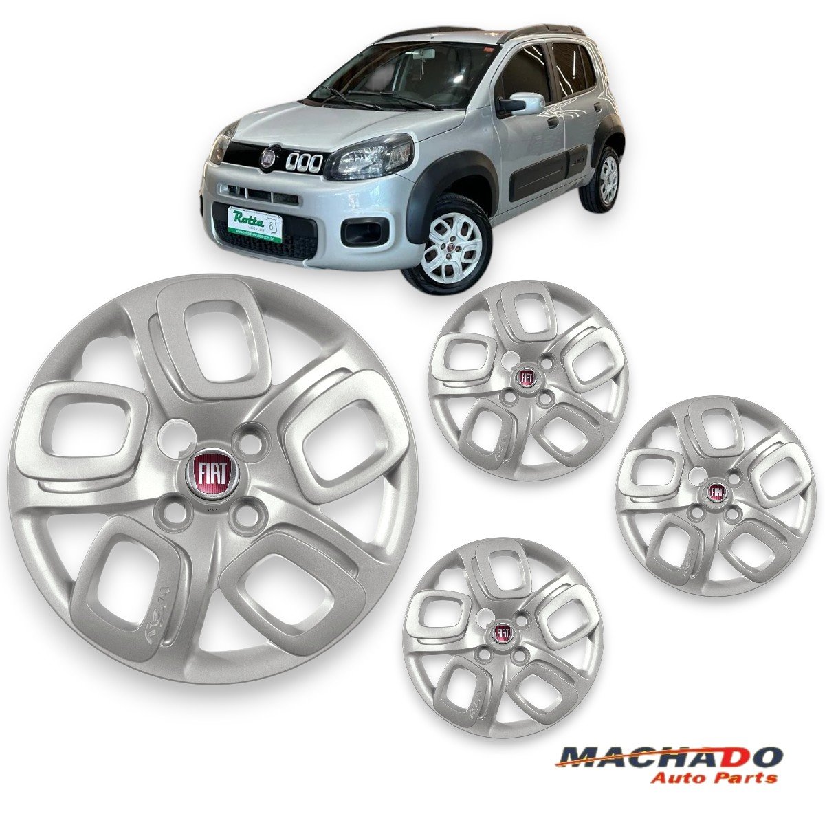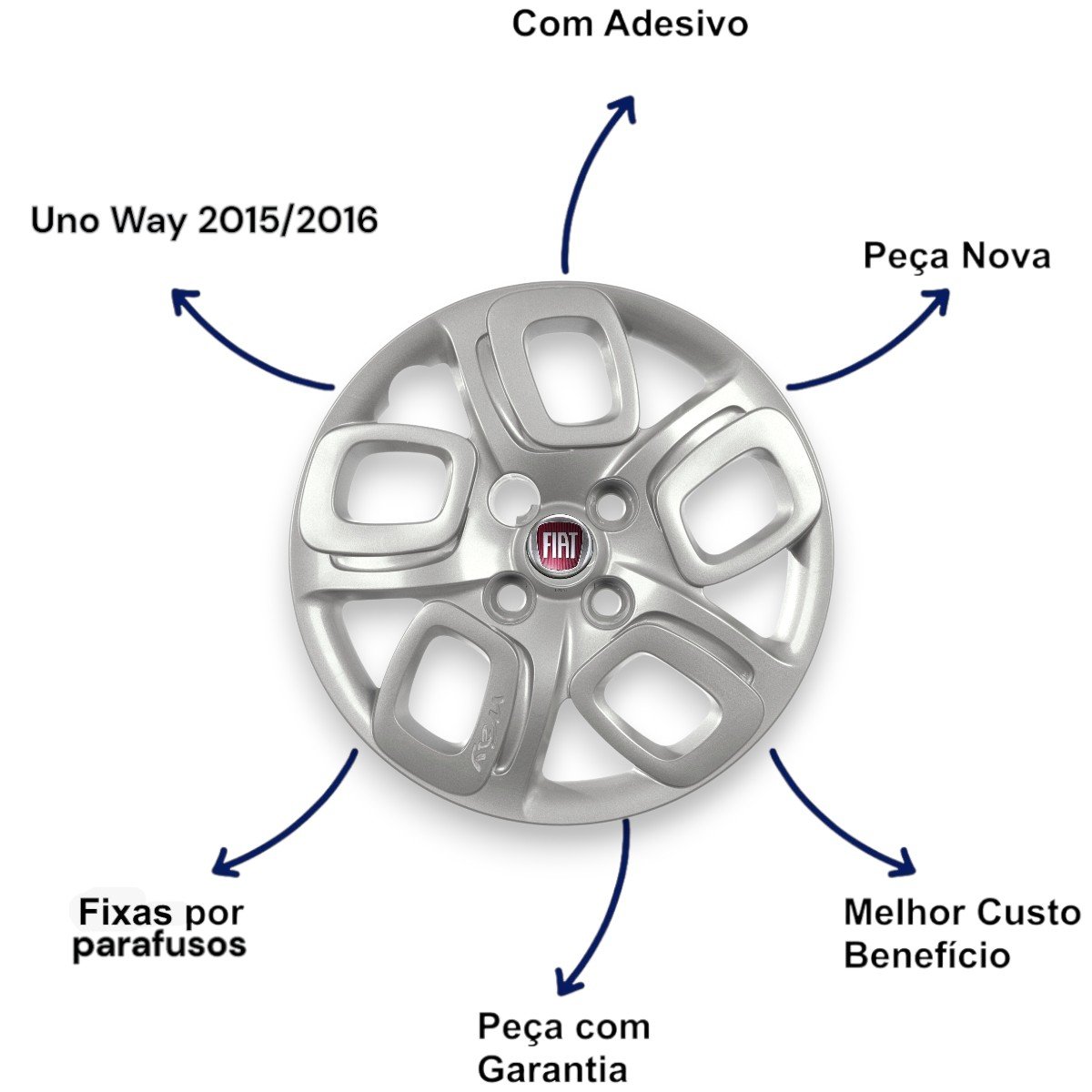 Jogo Calota Aro 14 Fiat Uno Way 2015 a 2018 Cubo Padrão Parafusada GRID