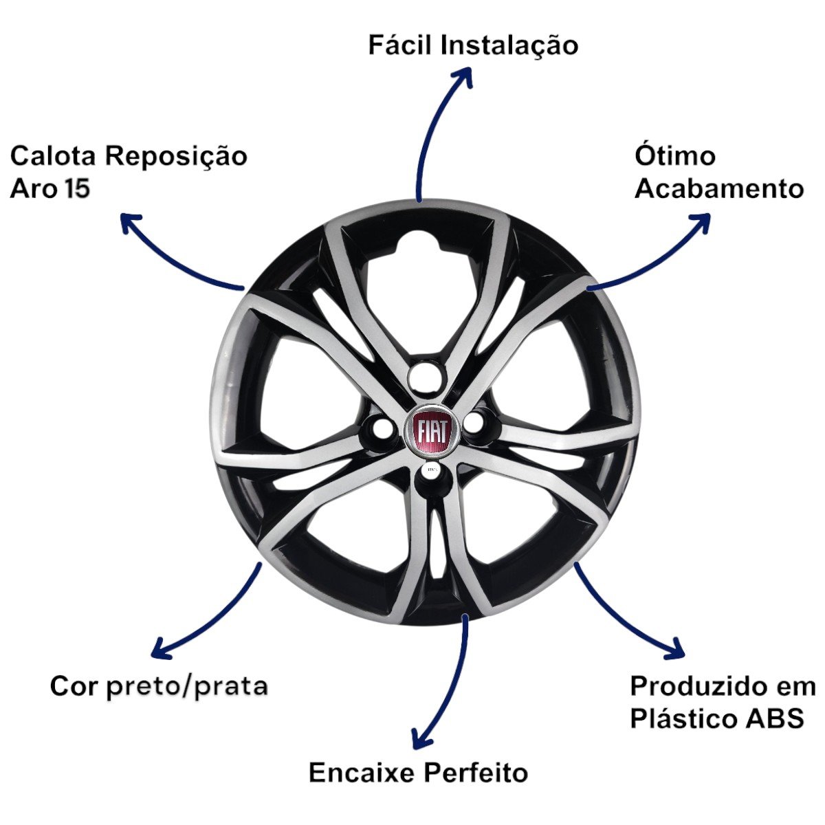 Jogo Calota Aro 15 Argo Após 2023 Prata Preto