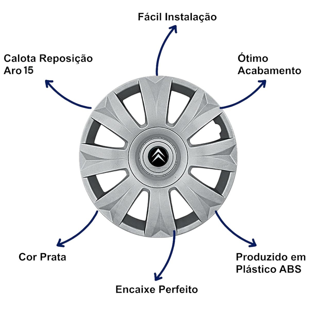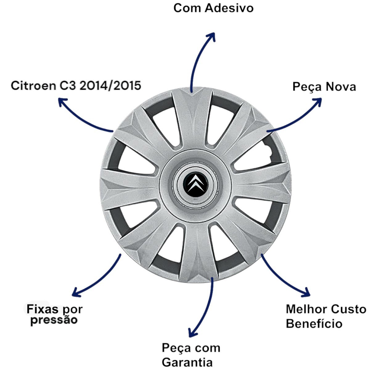Jogo Calota Aro 15 Citroen C3 2014 a 2015 Pressão GRID