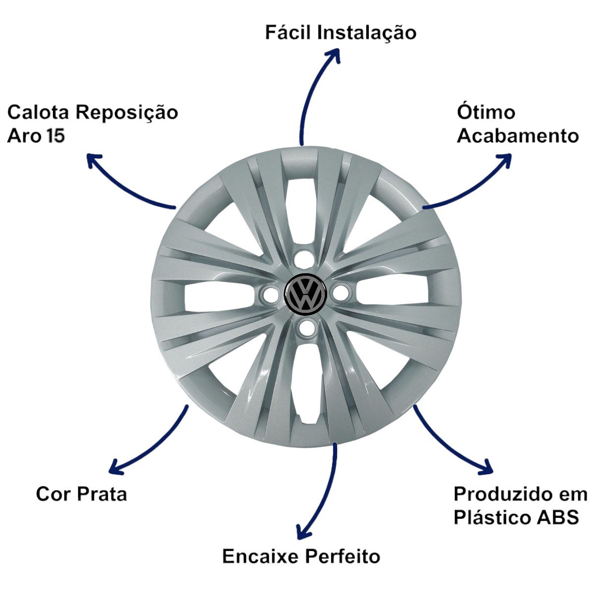 Jogo Calota Aro 15 Gol Voyage Saveiro 2020 a 2023 Prata