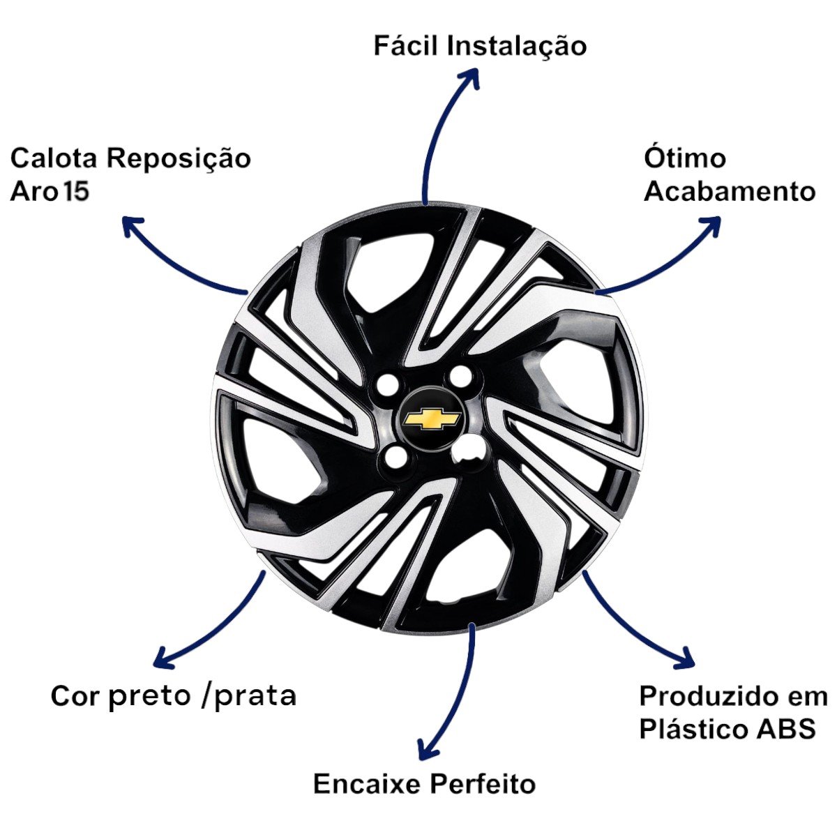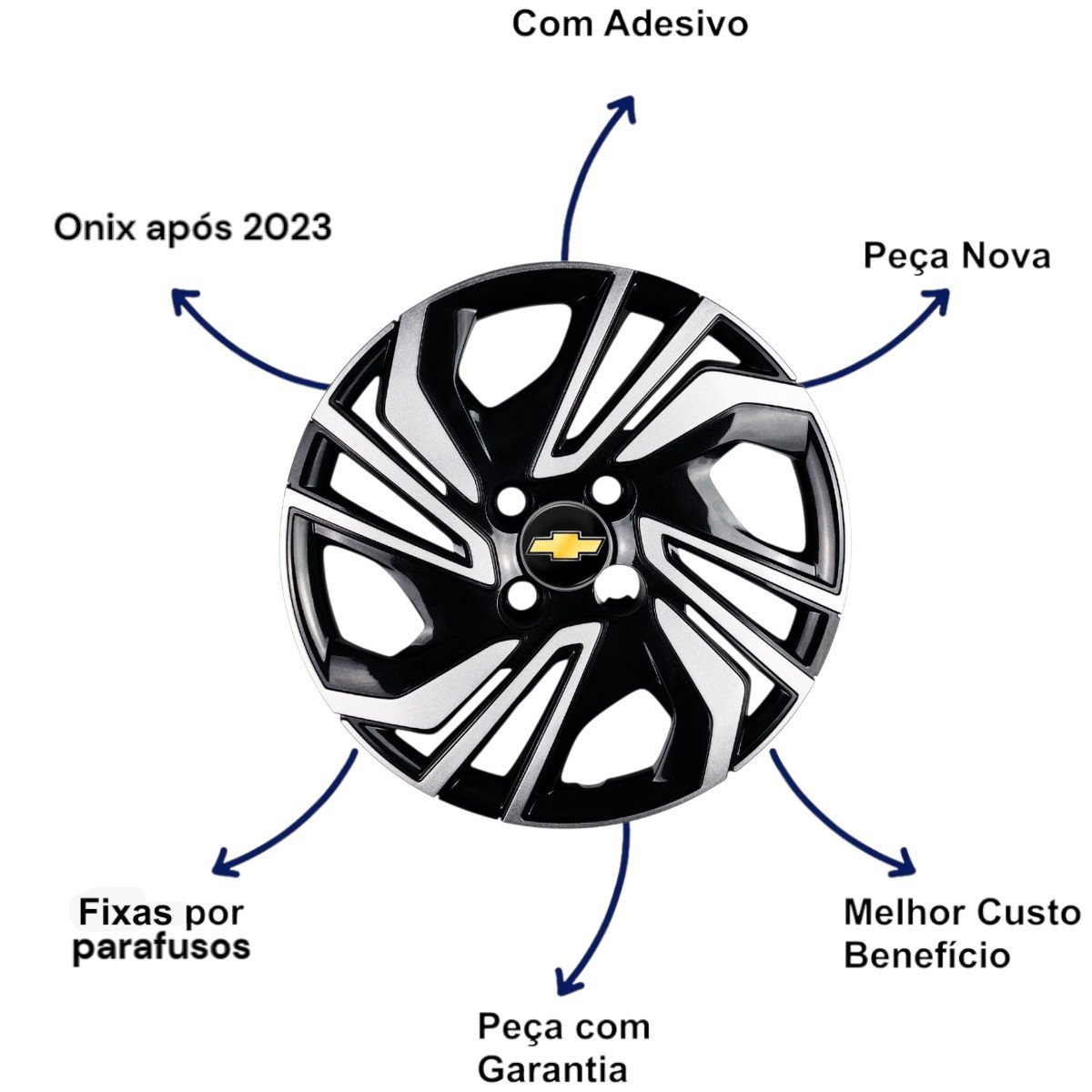 Jogo Calota Aro 15 Onix Hatch Plus Após 2020 Preto Prata