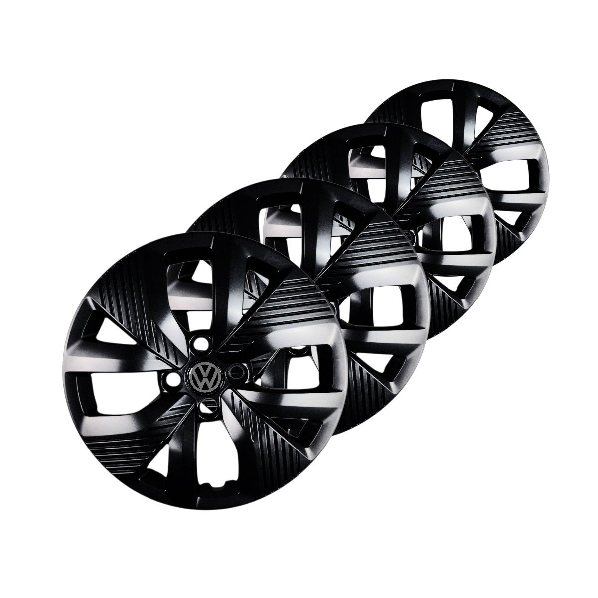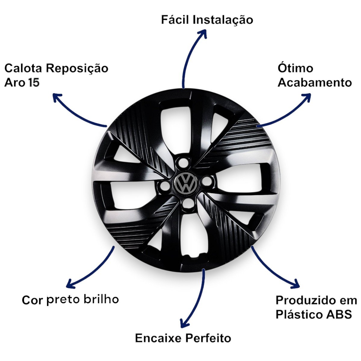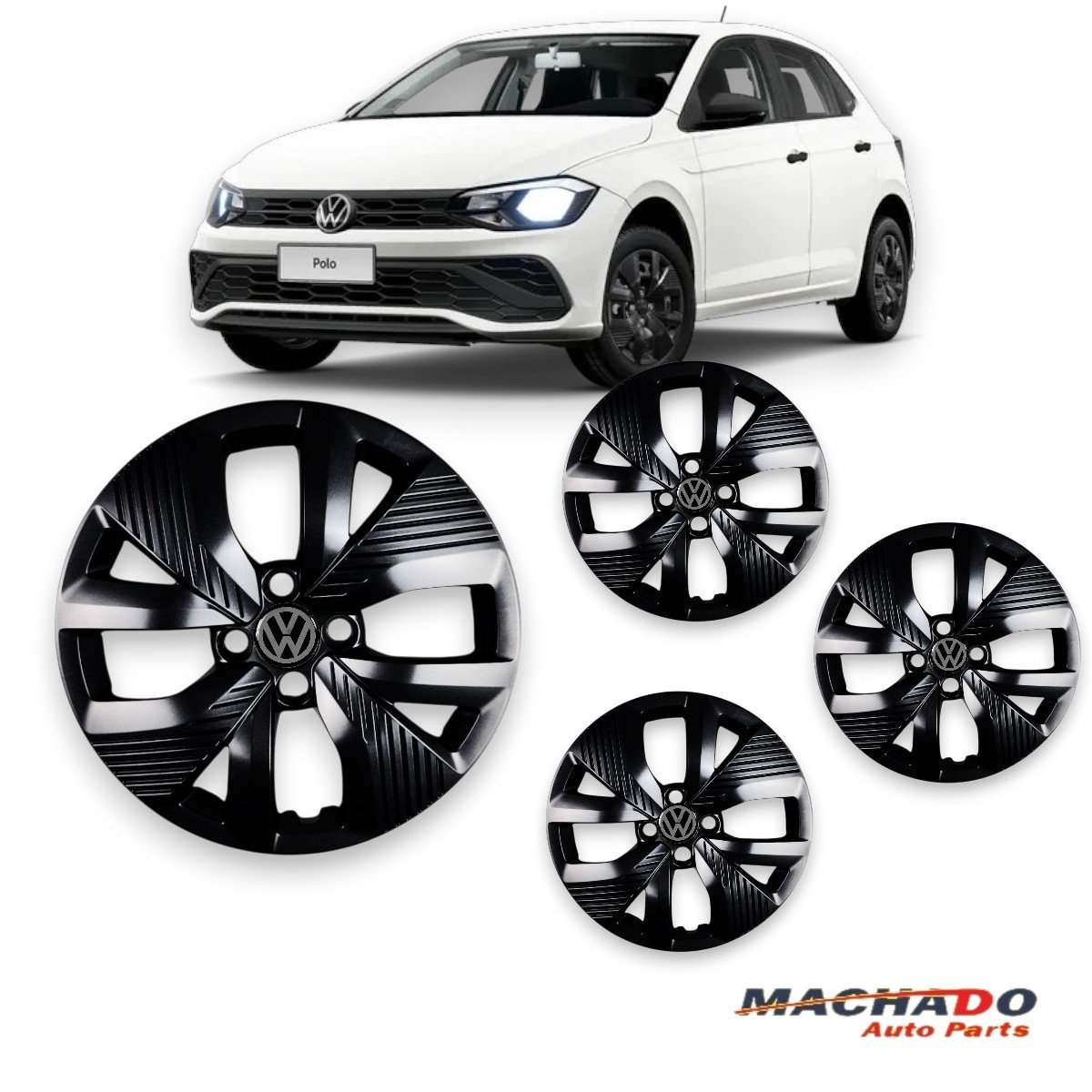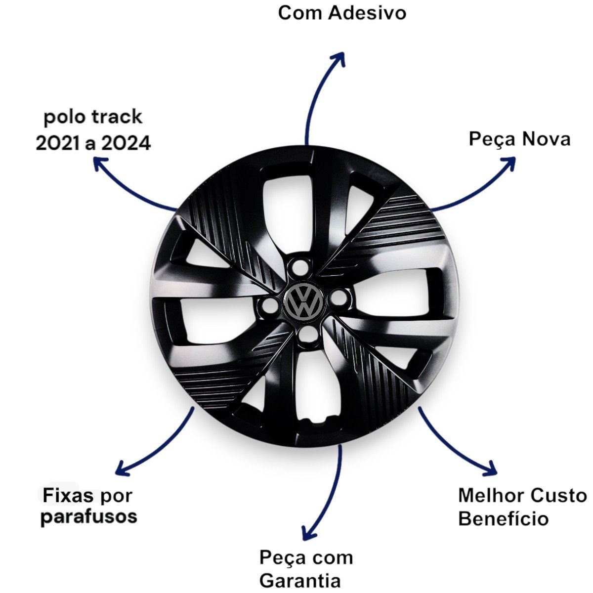 Jogo Calota Aro 15 Volkswagen Polo Track 2021 a 2024 Preto Brilho Cubo Padrao Parafusada GRID