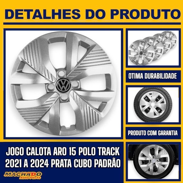 Jogo Calota Aro 15 Volkswagen Polo Track 2021 a 2024 Prata Cubo Padrao Parafusada GRID