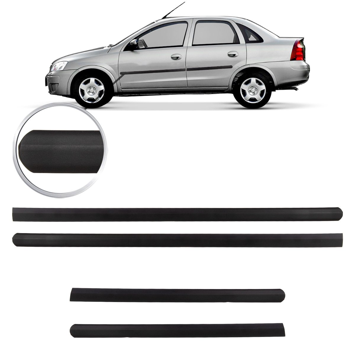 Jogo Friso Lateral Corsa Hatch Sedan 4 Portas 2002 a 2012 Preto