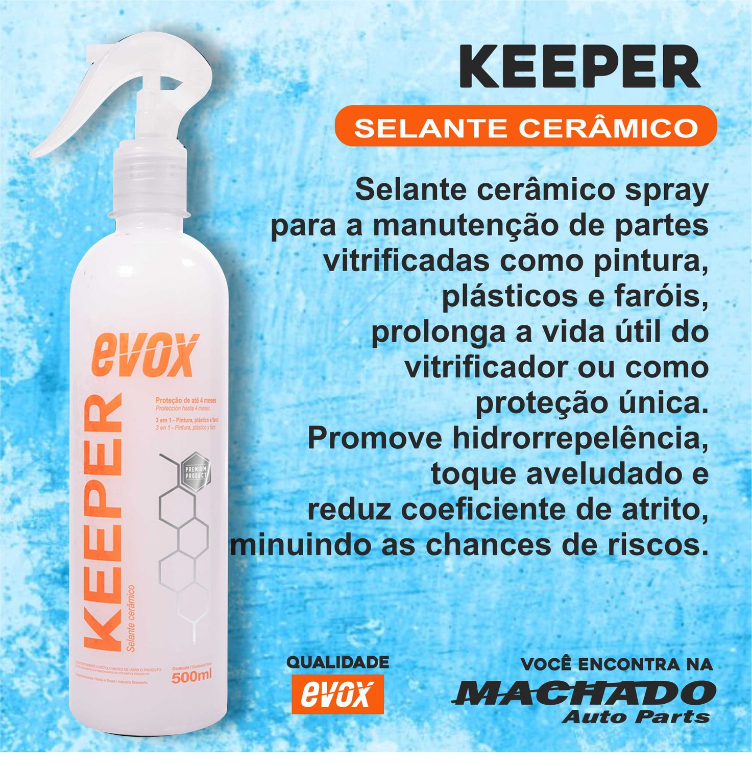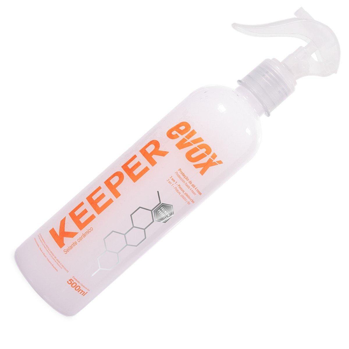KEEPER é um selante cerâmico spray usado para a manutenção de partes vitrificadas como pintura, plásticos e faróis prologando a vida útil do vitrificador ou como proteção única. O produto promove hidrorrepelência, toque aveludado e reduz coeficiente de atrito, diminuindo as chances de riscos.