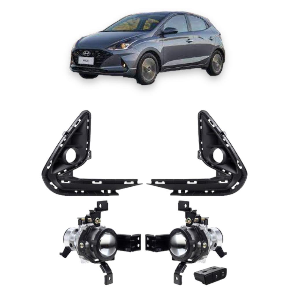 Kit Farol Auxiliar Milha HB20 2020 a 2022 Com Grades Botão Modelo Original