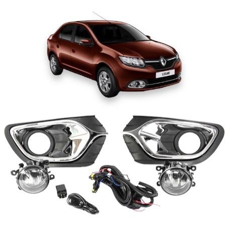 Kit Farol Auxiliar Milha Logan 2015 a 2019 Com Grade Cromada Kit Completo