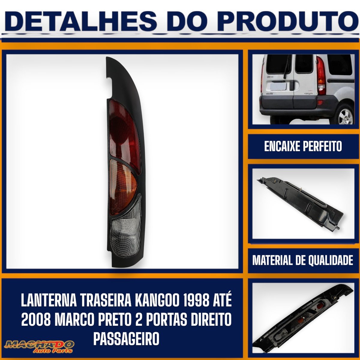 Lanterna Traseira Kangoo 1998 a 2007 Marco Preto 2 Portas (modelo de porta malas que abre pros lados) Traseiras Lado Direito Passageiro - FITAM