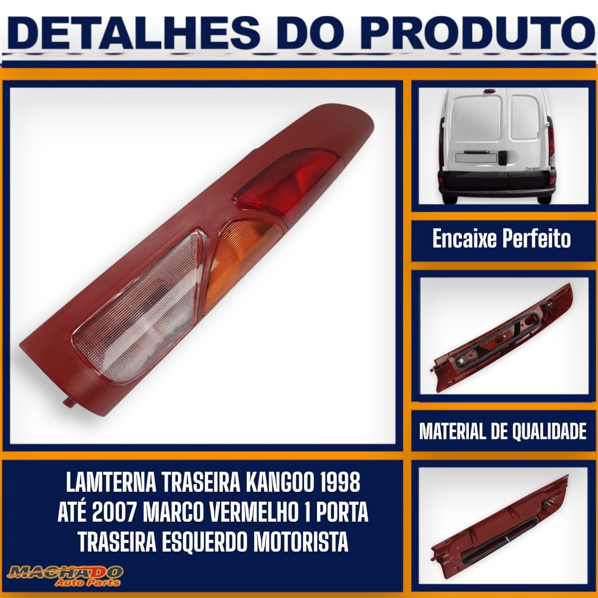 Lanterna Traseira Kangoo 1998 a 2007 Marco Vermelho 1 Porta (modelo de porta malas que abre pra cima) Traseira Lado Esquerdo Motorista -