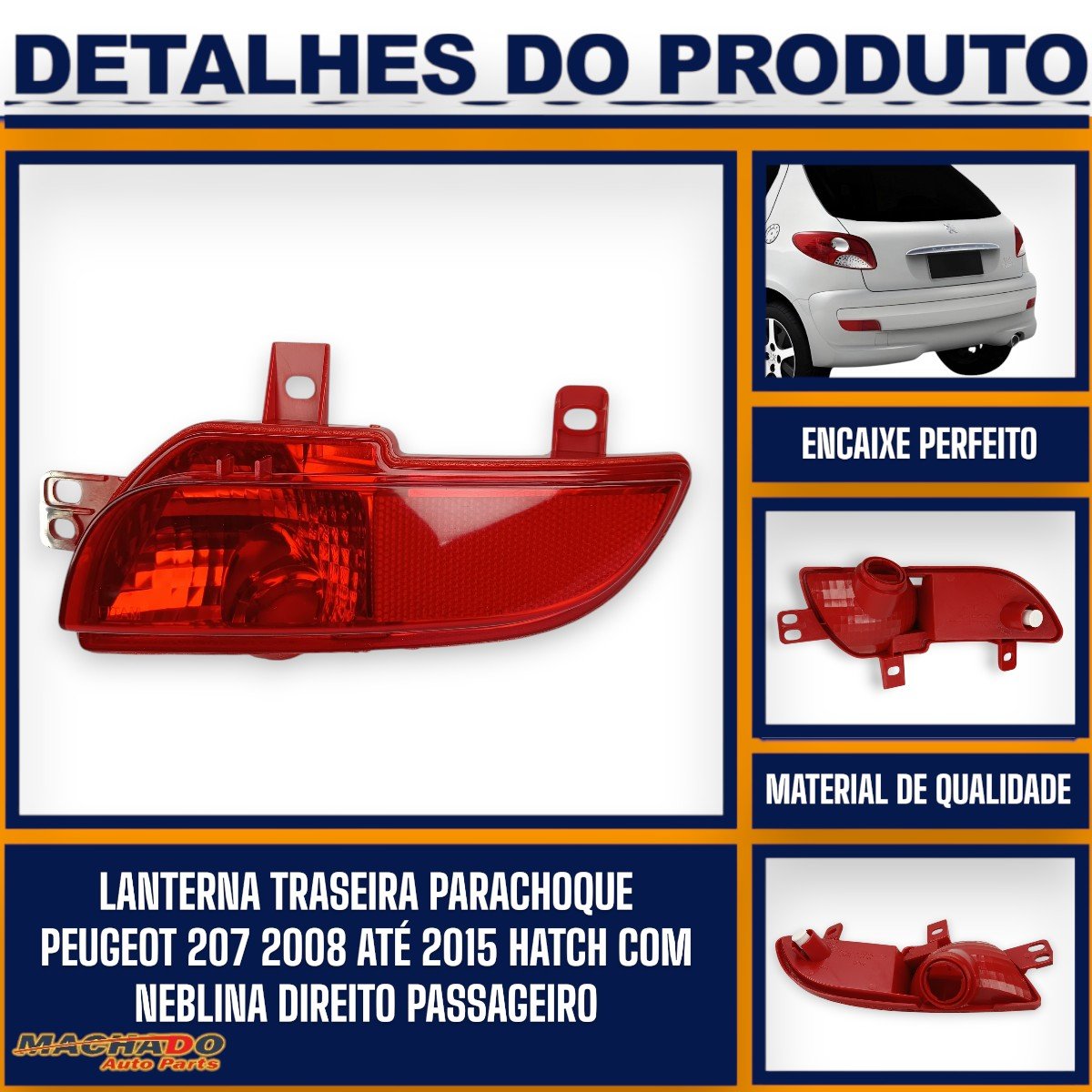 Lanterna Traseira Parachoque Peugeot 207 2008 a 2015 Hatch Com Neblina Direita FITAM