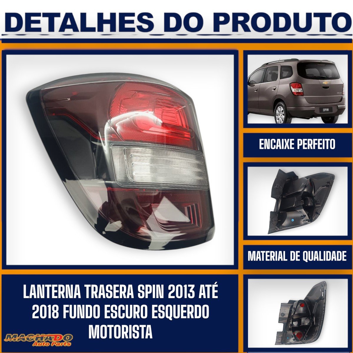 Lanterna Traseira Spin Active 2013 a 2018 Borda Preta Fundo Escuro Lado Esquerdo Motorista FITAM
