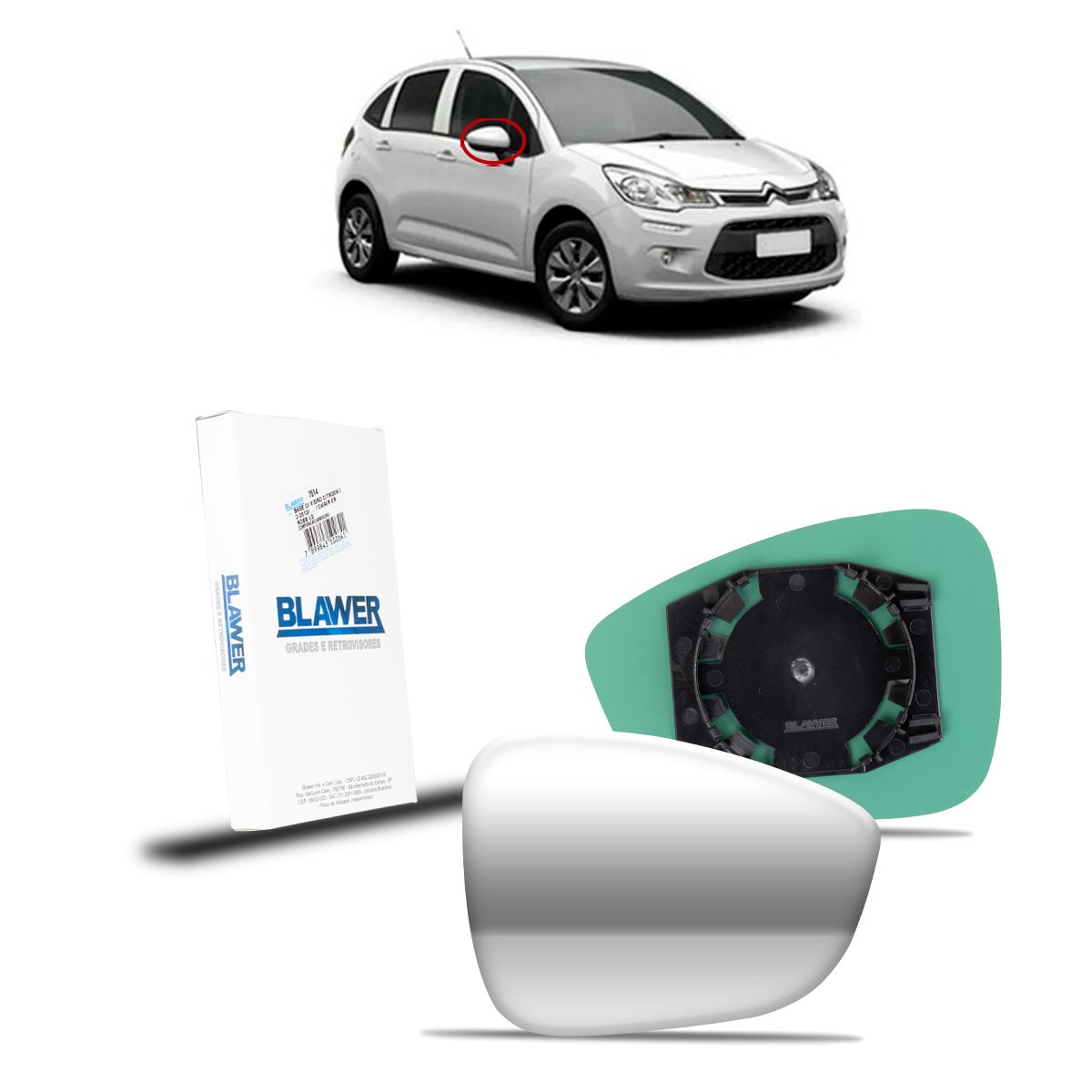 Lente C/ Base Refil Retrovisor C3 Picasso Aircross 2011 a 2021 Direito Caroneiro BLAWER