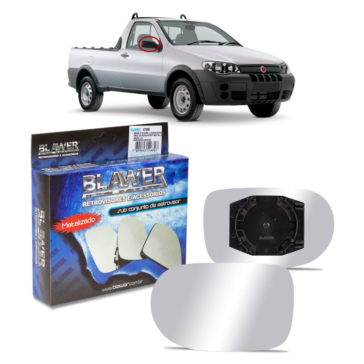 Lente C/ Base Refil Retrovisor Maior Palio Celebration Strada Siena 2011 a 2016 Direito Caroneiro BLAWER