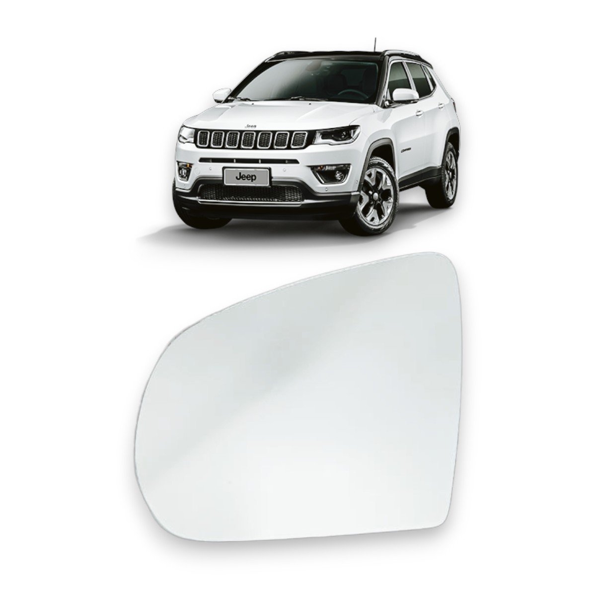 Lente S/ Base Refil Retrovisor Jeep Compass 2017 a 2023 Esquerdo Motorista Espelho Simples BLAWER