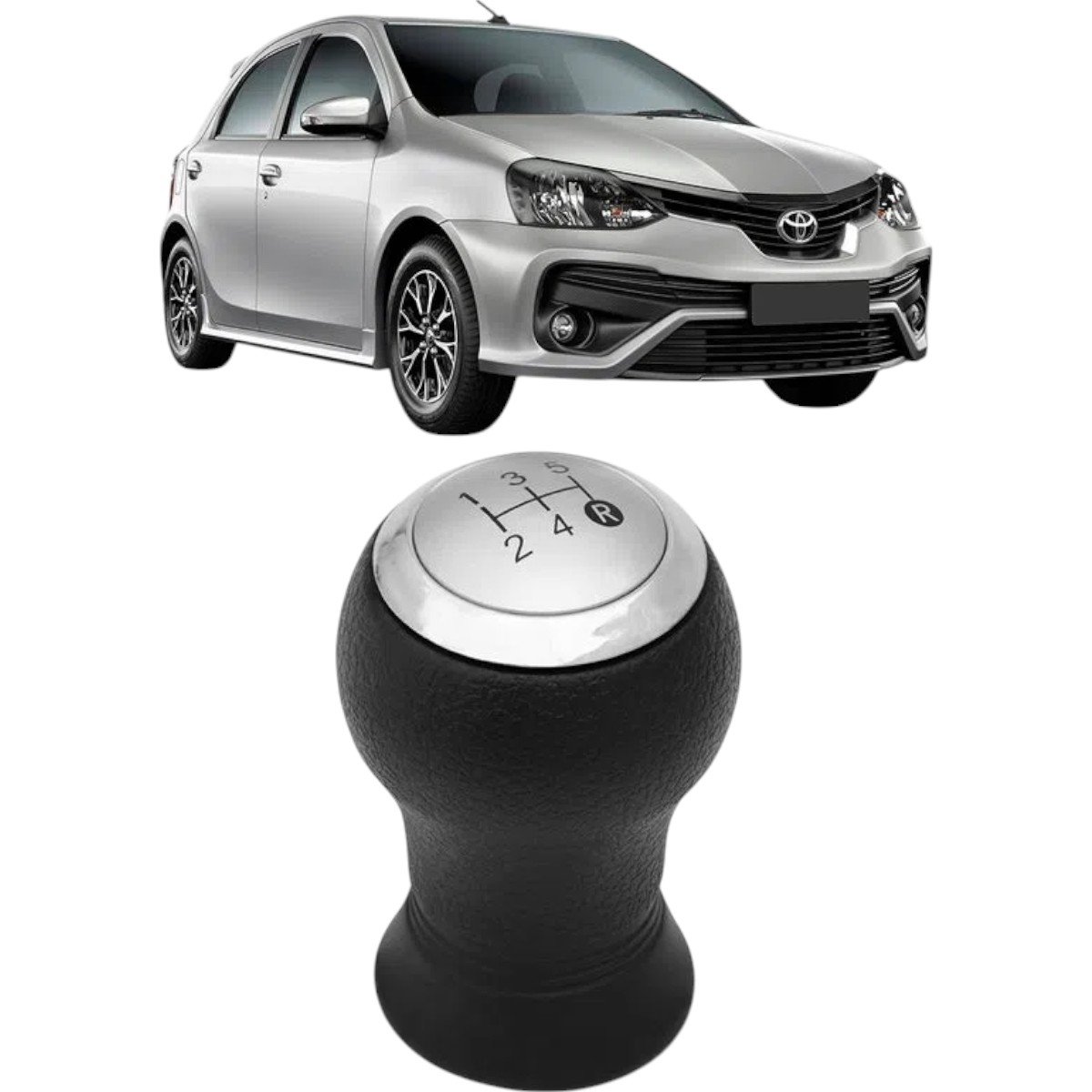Manopla Bola De Cambio Etios 2013 a 2016 Preta Aro Prata