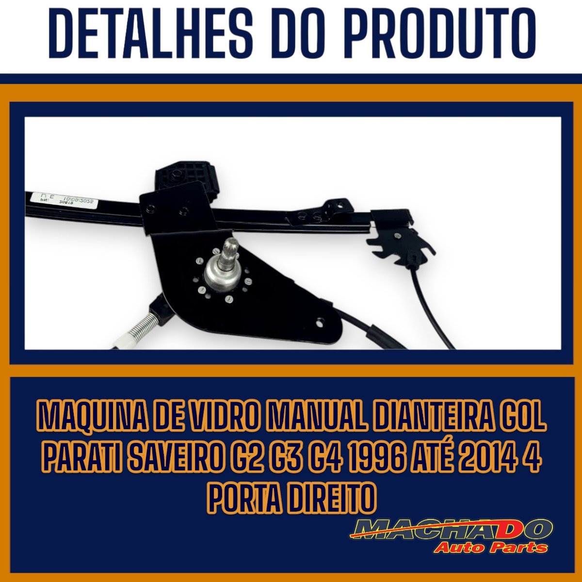 Máquina de Vidro Dianteira Manual Gol Parati Saveiro G2 G3 G4 1996 a 2014 4 Portas Direito Caroneiro