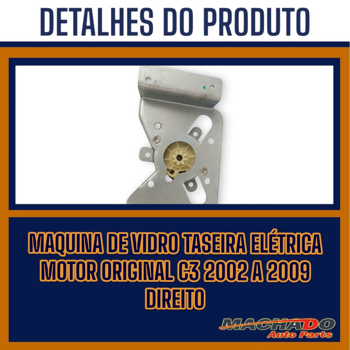 Máquina de Vidro Traseiro Elétrico Encaixe Motor Original C3 2002 a 2009 Direito Caroneiro
