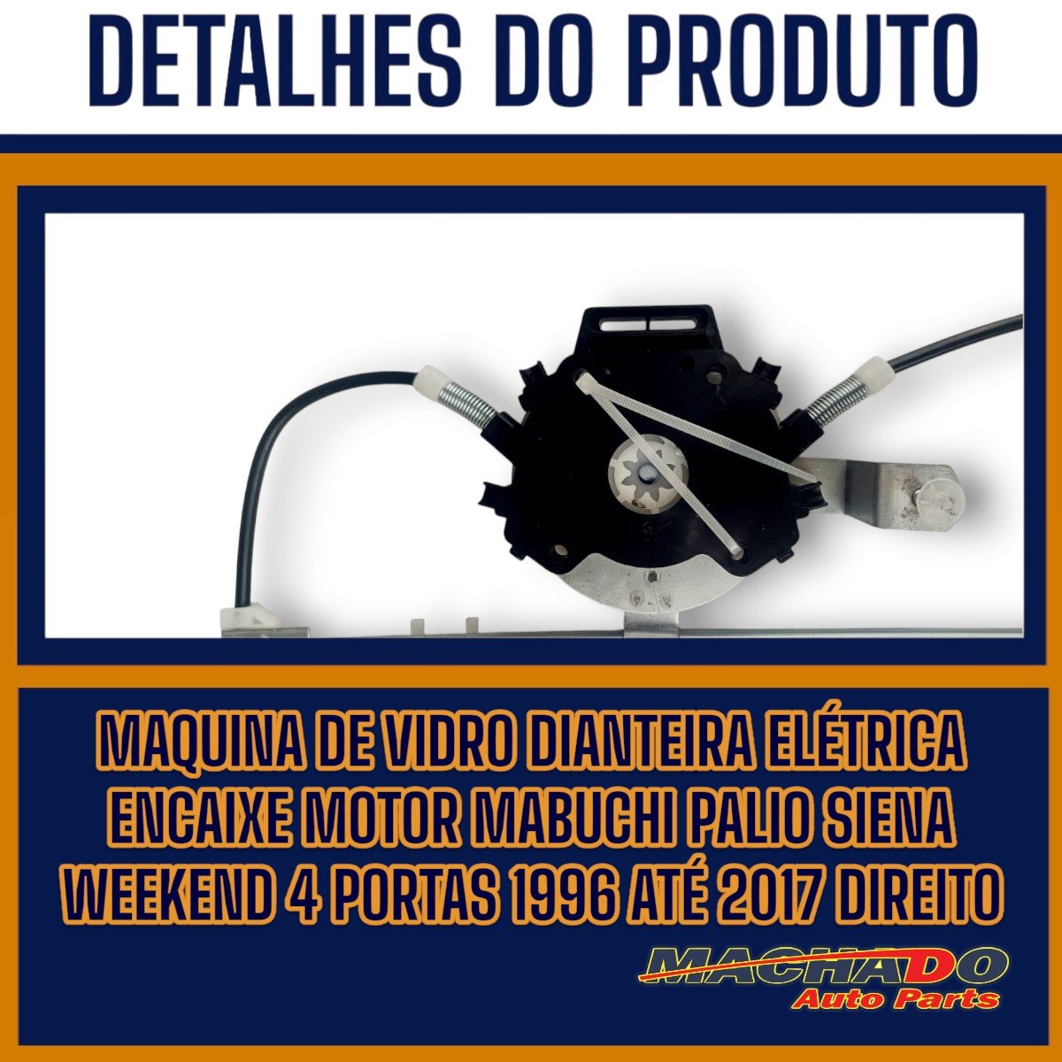 Máquina Vidro Dianteira Elétrica Encaixe Motor Mabuchi Palio Siena Weekend 4 Portas 1996 a 2017 Direito Caroneiro