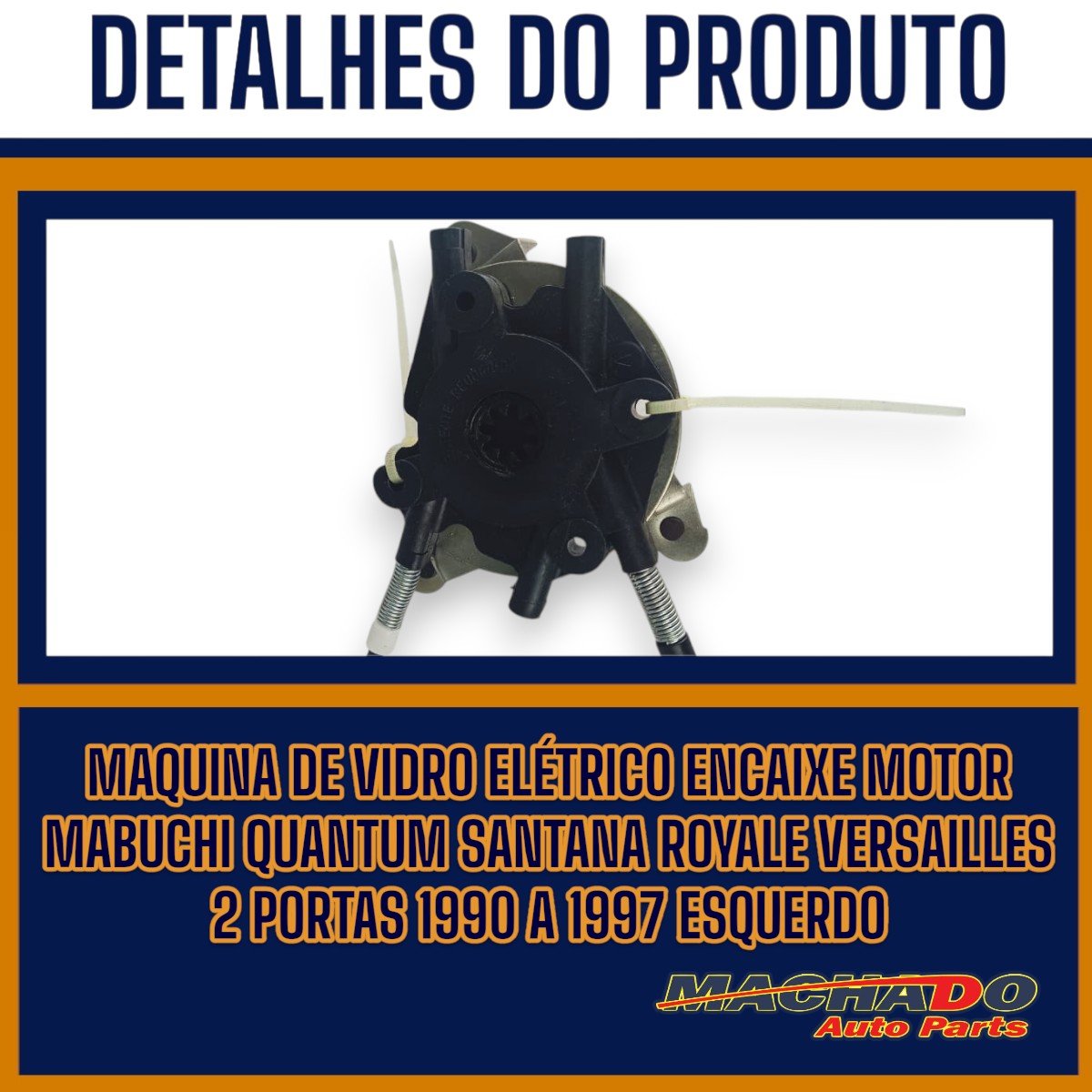 Máquina Vidro Dianteira Elétrica Encaixe Motor Mabuchi Quantum Santana Royale Versailles 2 Portas 1990 a 1997 Esquerdo Motorista