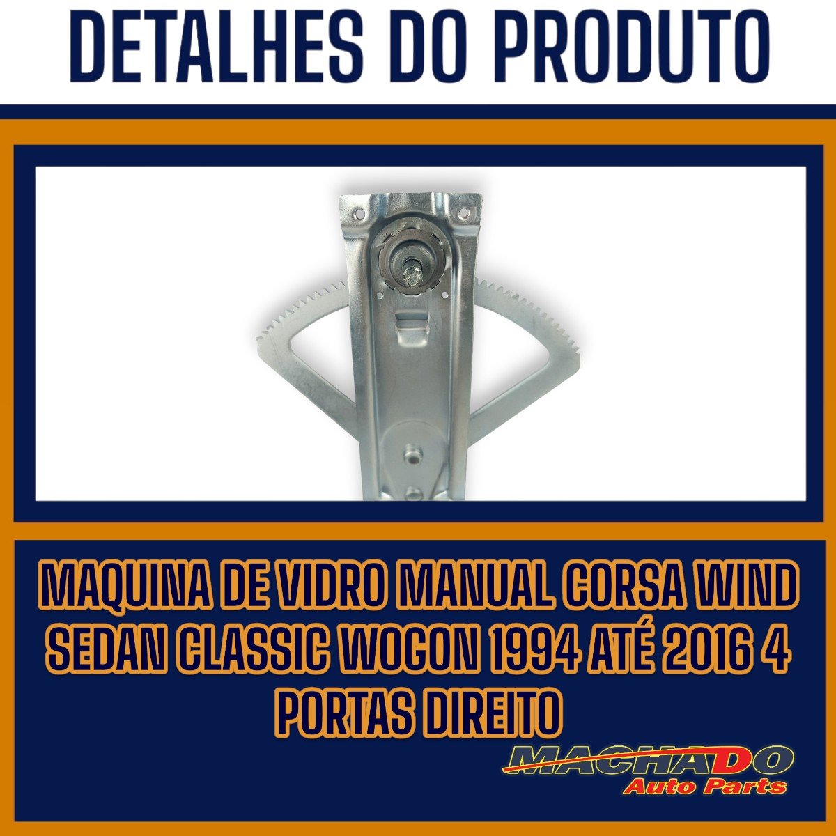 Máquina Vidro Dianteira Manual Corsa Wind Sedan Classic Wagon 1994 a 2016 4 Portas Direito Caroneiro