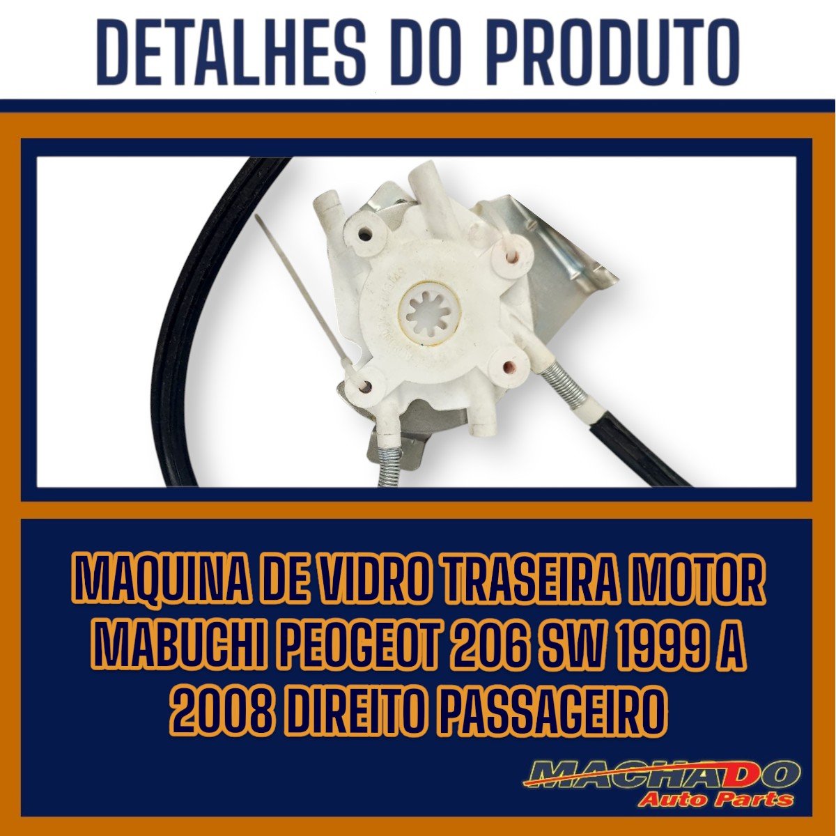 Máquina Vidro Traseira Elétrica Encaixe Motor Mabuchi Peugeot 206 SW 1999 a 2008 Direito Caroneiro