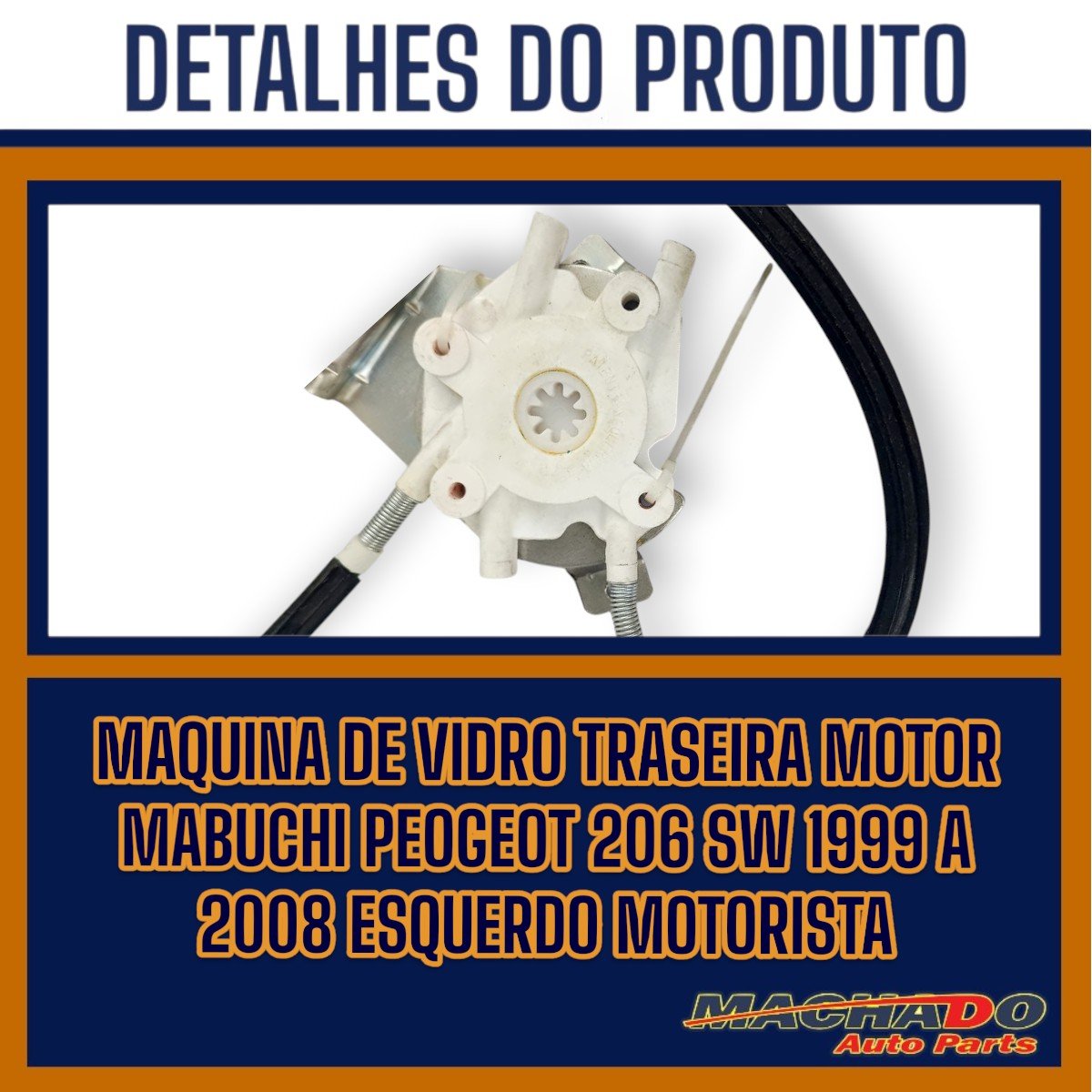 Máquina Vidro Traseira Elétrica Encaixe Motor Mabuchi Peugeot 206 SW 1999 a 2008 Esquerdo Motorista