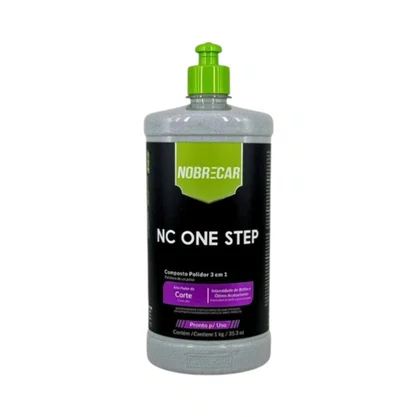 NC One Step - Composto polidor 3 em 1: Polidor one step de alta performance: Produto desenvolvido para remoção de arranhões profundos, médios e suaves e marcas de lixamento a partir de grão P1500, com um único só produto podendo fazer corte, refino e lustro, apenas com troca de boinas. Sua combinação de micro abrasivos híbridos promove um corte e um acabamento extraordinário, com uma intensidade e profundidade de brilho em um processo rápido, pode ser utilizado em todos os tipos de pintura, inclusive black piano e plásticos injetados, tanto com politriz rotativa quanto roto orbital. Por ser um único só produto, proporciona economia e agilidade.