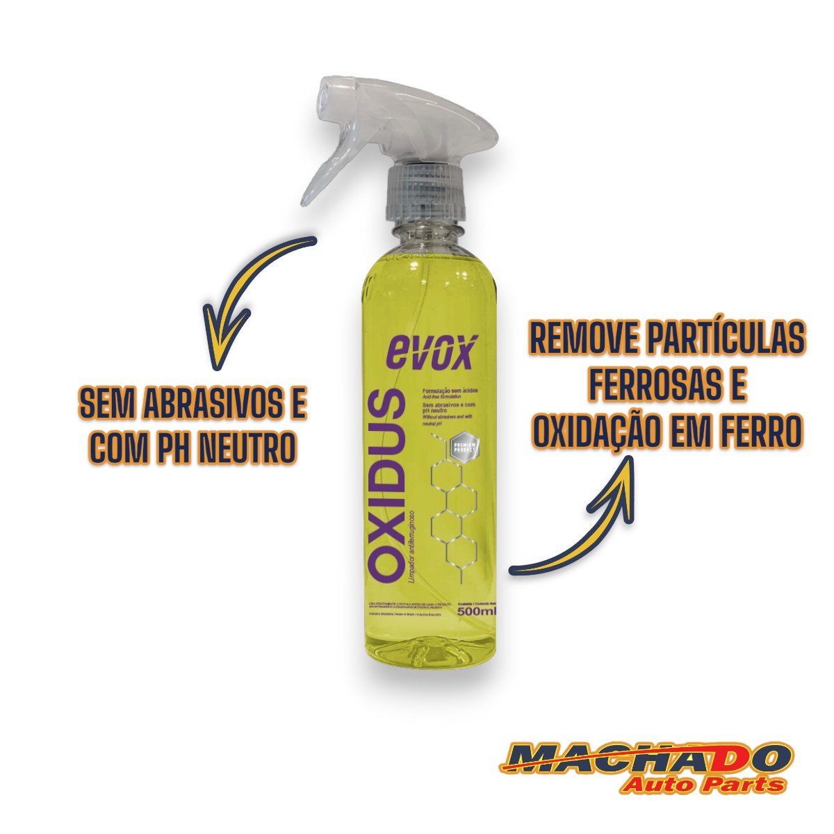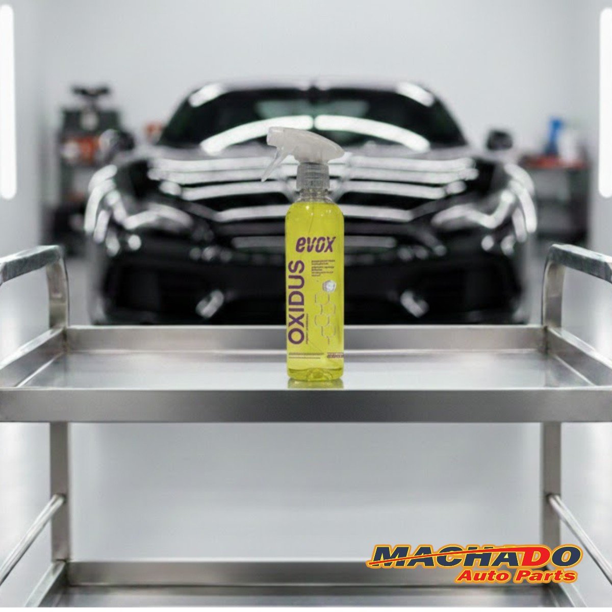 OXIDUS é um removedor de partículas ferrosas e oxidação em ferro, sem abrasivos e com pH neutro, foi desenvolvido para descontaminar com eficiencia partículas ferrosas em roda e pintura. O produto age através de uma reação química de complexação e muda do incolor para coloração roxa ou marrom ao reagir com a contaminação ferrosa, e desta forma a contaminação é facilmente removida no enxague. O Oxidus é essencial no detalhamento automotivo, age também na remoção de ferrugem de superficies metálicas e renova o aspecto de superficies cromadas envelhecidas.