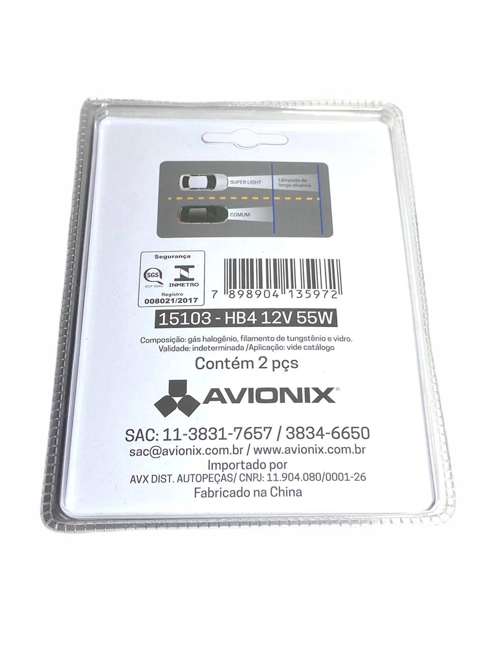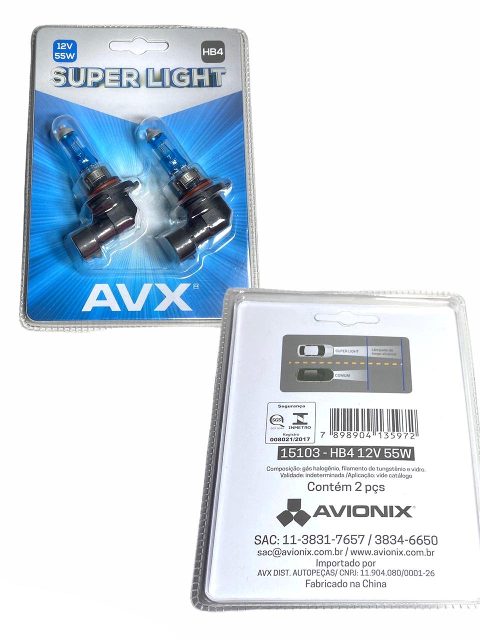 Par Lâmpada Super Branca HB4 Super Light 55W AVX