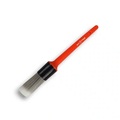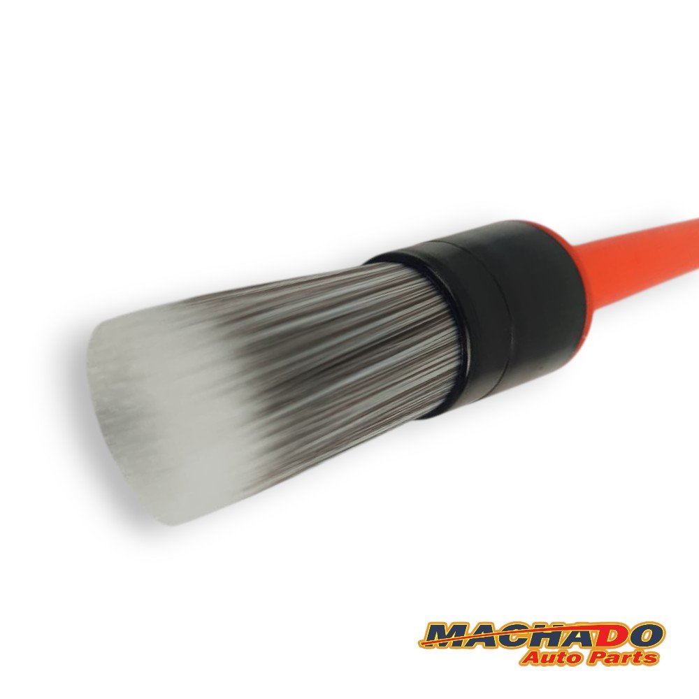 - Possui cerdas macias, que não danificam a superfície a ser limpa, evitando danos causados por pinceis comuns.Pincel de cerdas claras, ponta redonda com cabo curto.