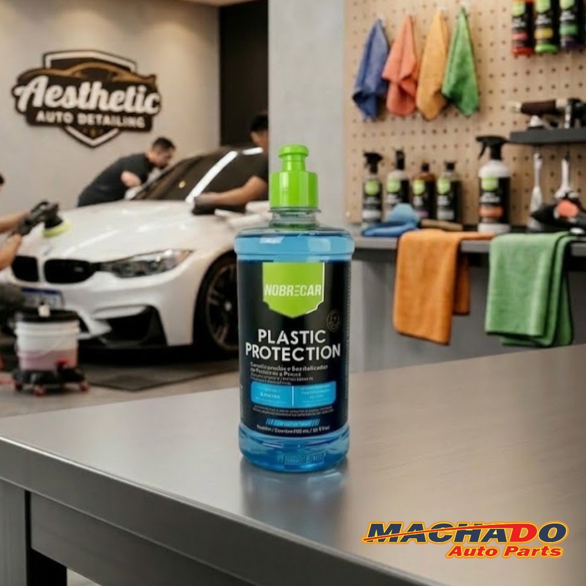 O PLASTIC PROTECTION é a solução definitiva para proteger plásticos e borrachas do seu veículo. Com uma formulação inovadora à base de polímeros sintéticos de alta performance e emulsões aromatizadas, este produto cria uma barreira protetora que previne ressecamento, perda de coloração e oferece repelência excepcional contra água e sujeira. Ideal para superfícies internas e externas, ele garante um acabamento acetinado e sofisticado com aroma suave, tornando-se um aliado indispensável na estética automotiva.