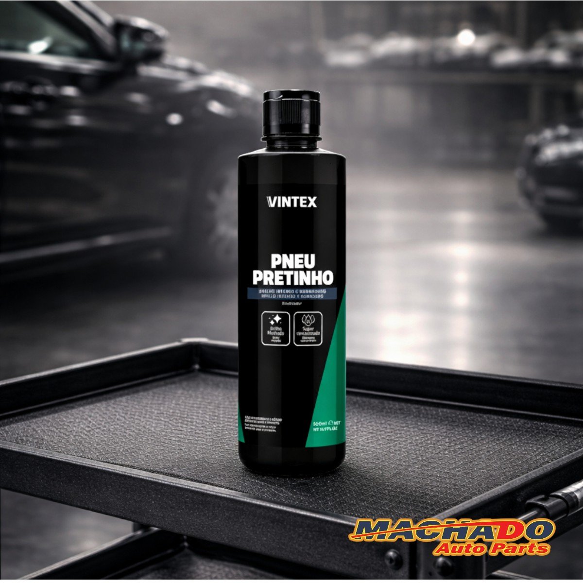 O Pneu Pretinho é um produto que foi especialmente desenvolvido para proteger, conservar e dar brilho aos pneus em geral. Promove proteção prolongada, brilho intenso e duradouro que deixa os pneus com aspecto de novos.