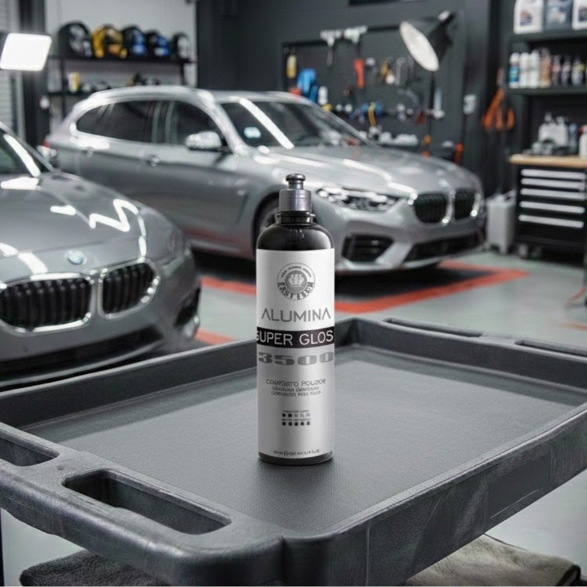 O composto polidor de lustro Alumina Super Gloss é revolucionário, a última palavra em termos de brilho. Usando a exclusiva tecnologia de abrasivos iPT Scholl Concepts Germany, Alumina é um produto que garante um brilho intenso e profundo, extremamente lubrificado e deixando um acabamento impecável. Com a quebra inteligente de abrasivos durante o processo, os compostos da linha Alumina conseguem trabalhar em correções detalhadas capazes de surpreender os olhos mais atentos. A profundidade de brilho e a intensidade de reflexo são as características mais marcantes deste surpreendente produto..