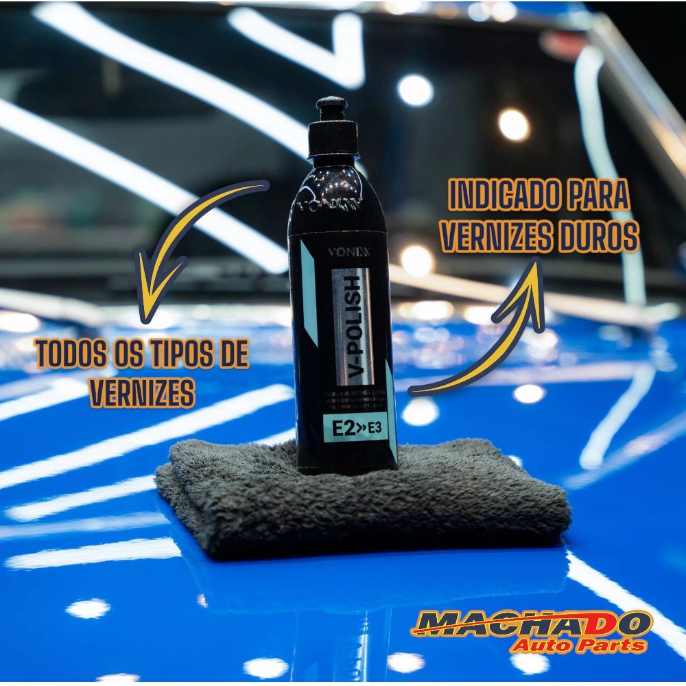 V-POLISH é um composto polidor de refino desenvolvido com tecnologia VHP (Voxer Hybrid Polish), que proporciona excelente acabamento para todos os tipos de vernizes e remove facilmente microrriscos.