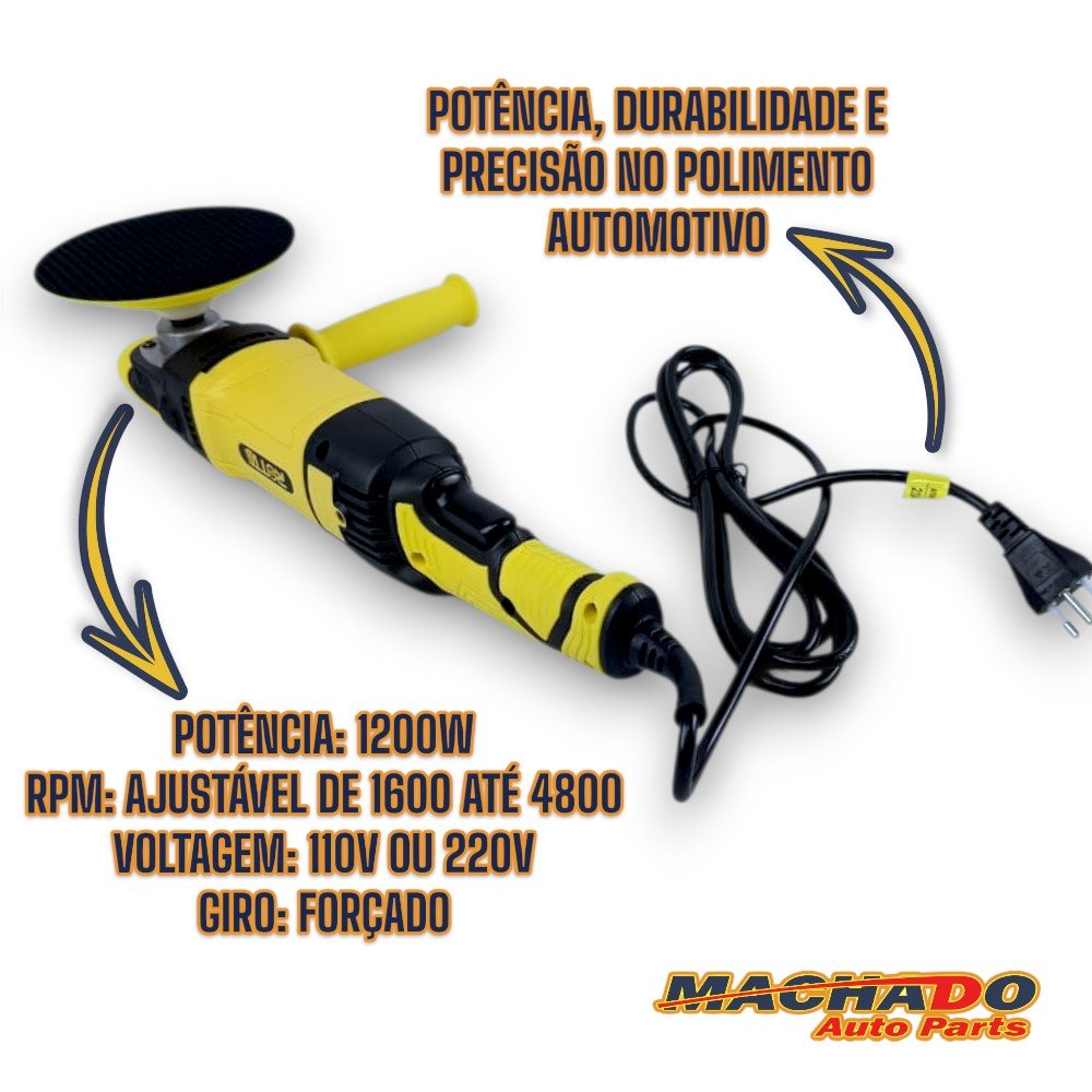 Apresentamos a Politriz Rotativa Premium (códigos 2510 / 2511), a escolha definitiva para quem busca potência, durabilidade e precisão no polimento automotivo. Desenvolvida com tecnologia de ponta e design ergonômico, esta politriz oferece desempenho superior para remoção rápida de imperfeições e acabamento impecável em qualquer tipo de pintura.