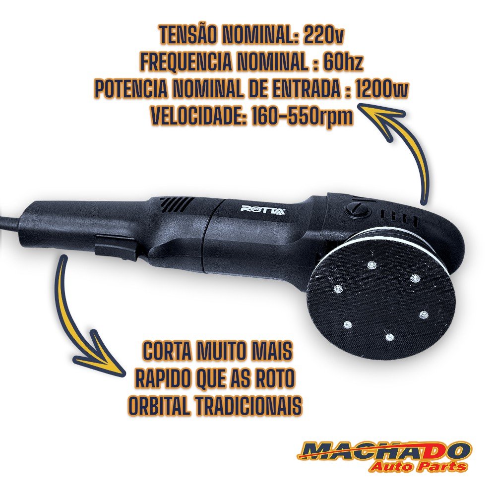 Ela faz o giro circular e orbital simultaneamente, tendo o desempenho de uma politriz e o acabamento de uma roto orbital.