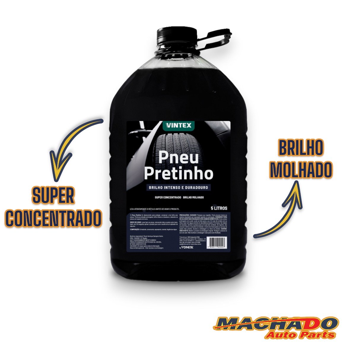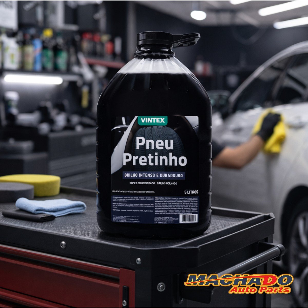 O Pneu Pretinho é um produto que foi especialmente desenvolvido para proteger, conservar e dar brilho aos pneus em geral. Promove proteção prolongada, brilho intenso e duradouro que deixa os pneus com aspecto de novos.