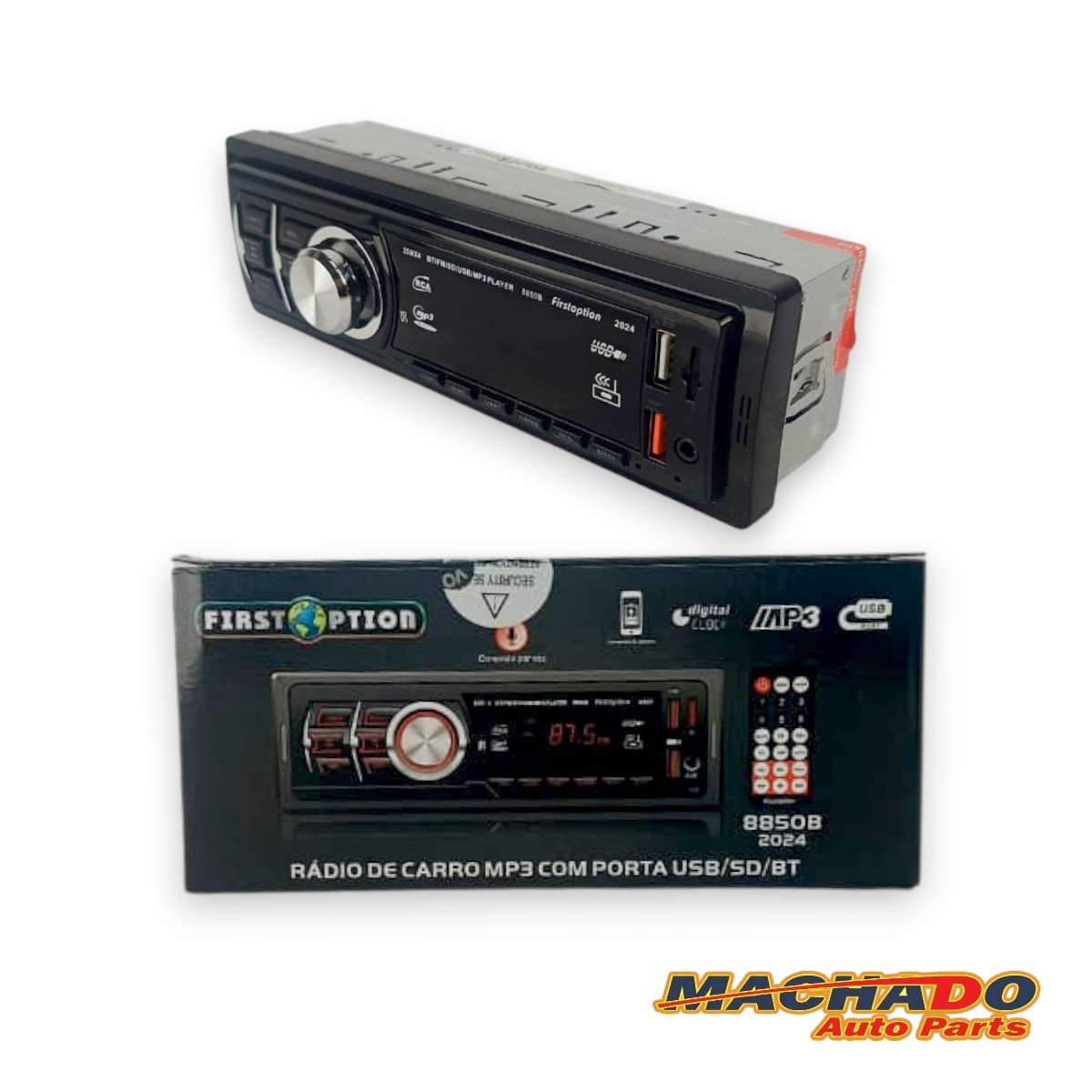 Radio MP3 Player Som Automotivo First Option - Controle Remoto - USB - Cartão SD - AUX - Bluetooth