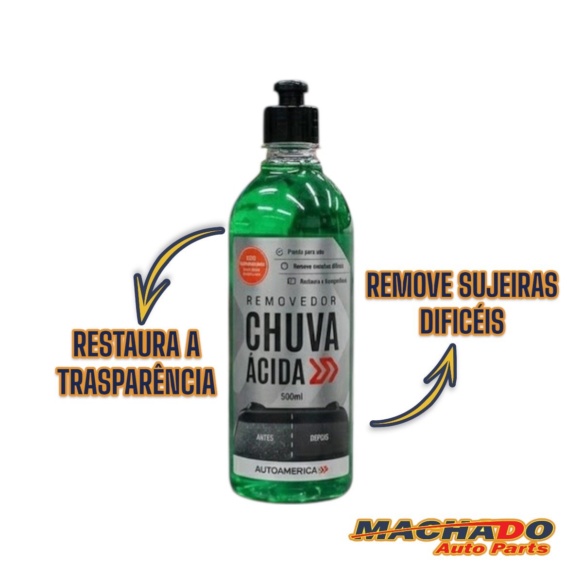 O Removedor de Chuva Ácida da Autoamerica é formulado para eliminar marcas d'água e manchas em superfícies externas de vidro automotivo. É eficaz contra respingos, seiva de árvores, sujeira da estrada, insetos, incrustações causadas por chuva ácida e agentes químicos.