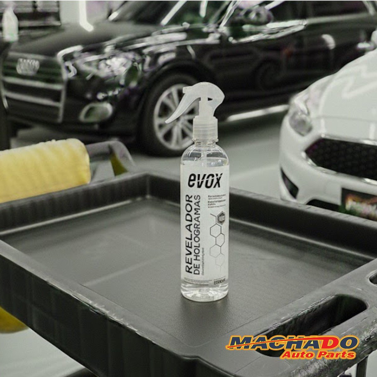 O Revelador de Hologramas revela os reais defeitos da pintura do veículo, evidenciando hologramas e swirls mascarados pelo uso de ceras, selantes e polidores. Seu uso também remove da superfície veicular produtos que contenham silicone e contaminações diversas, preparando a peça para inspeção e avaliação.
