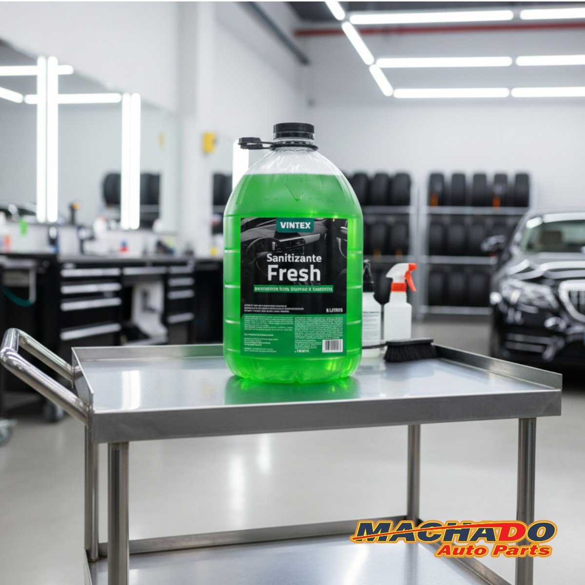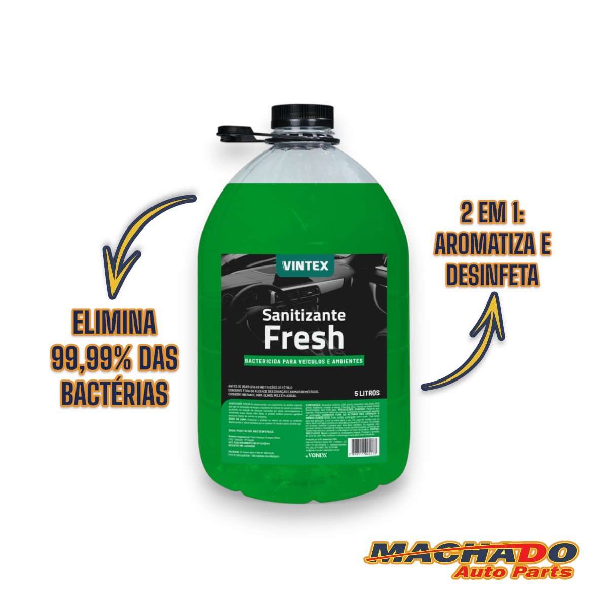 Sanitizante Fresh foi desenvolvido com quaternário de amônio especial, que age na eliminação de fungos e bactérias do interior do veículo ou ambiente, auxiliando na redução de doenças causadas por esses microorganismos e eliminando maus odores. Além disso, o produto também promove agradável aroma no interior do veículo ou ambiente.