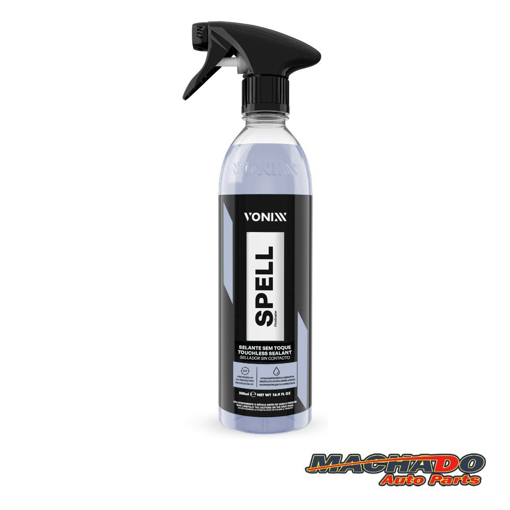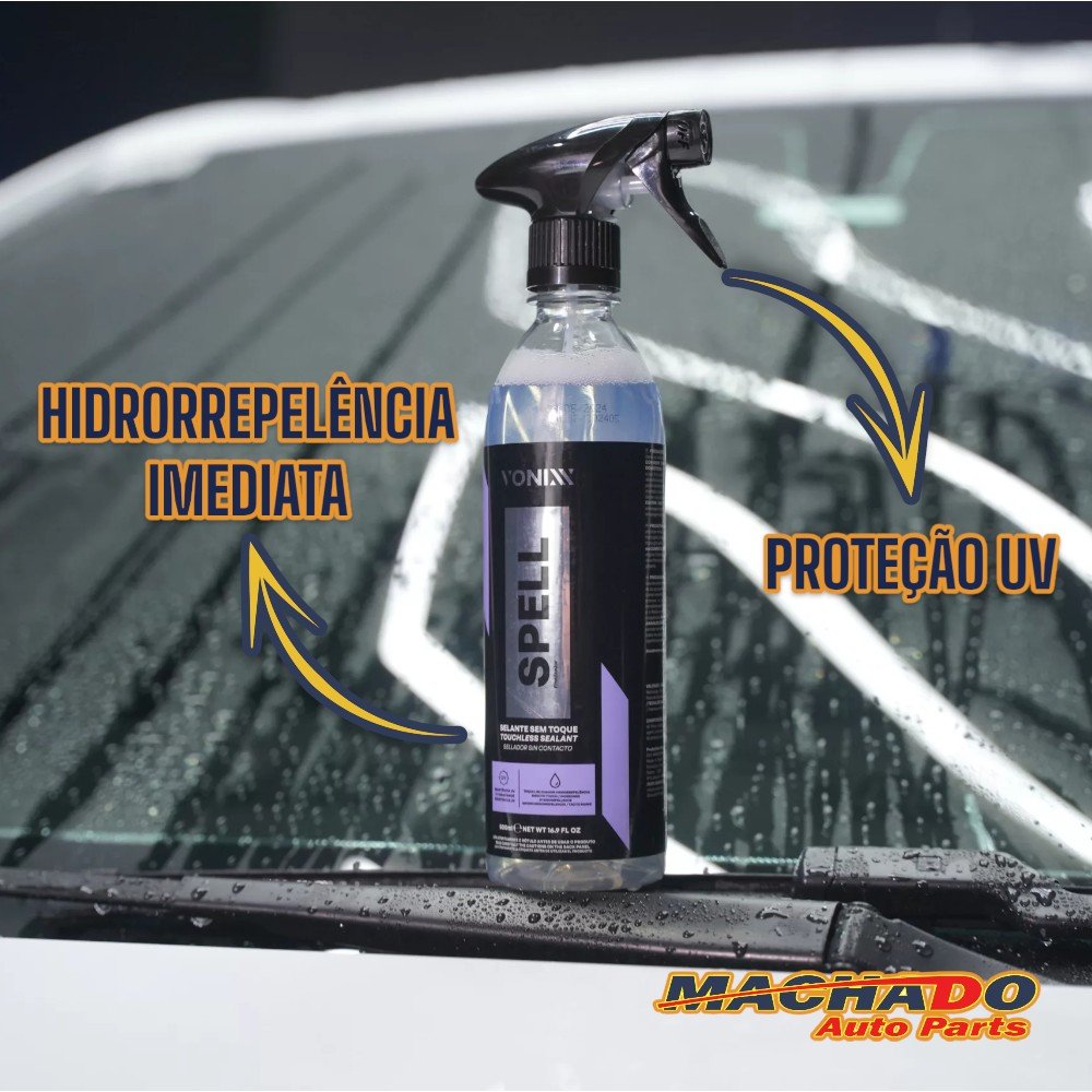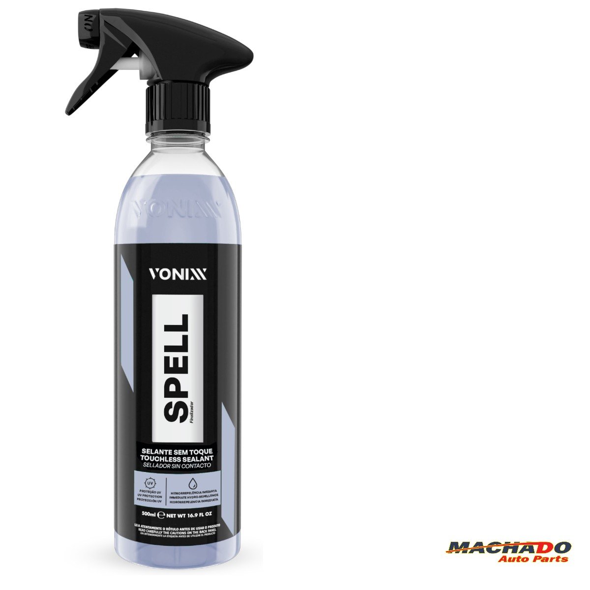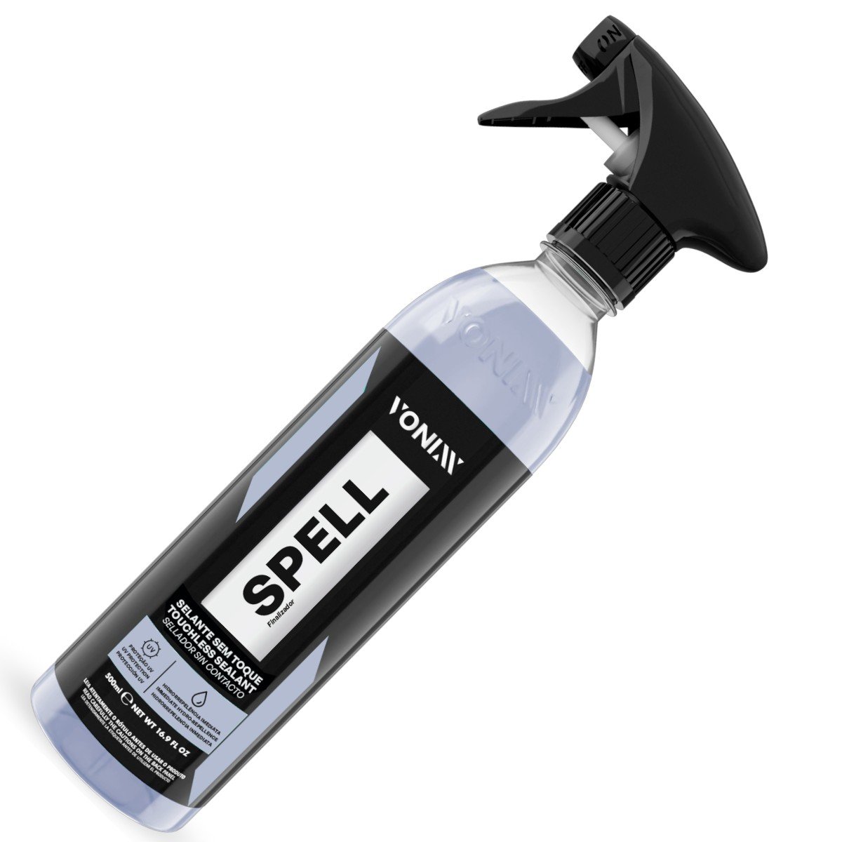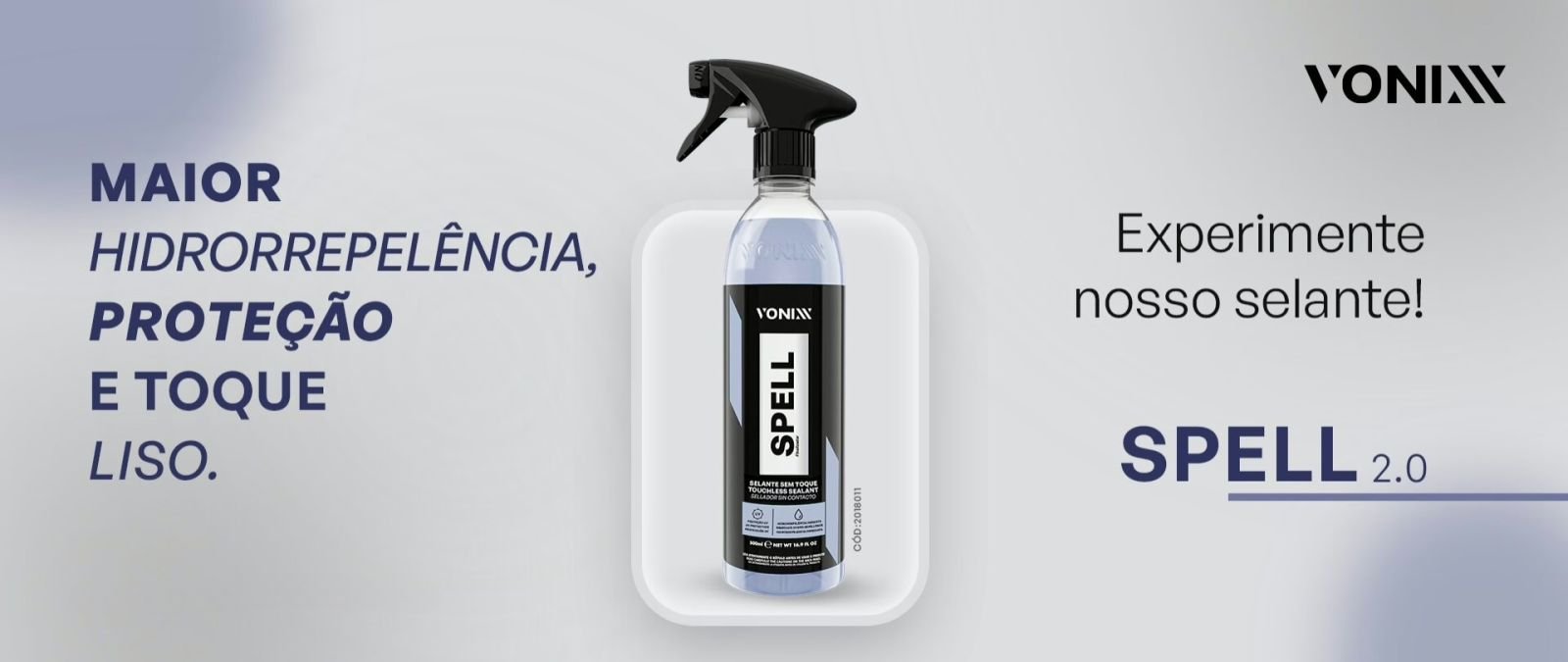 Spell é um selante inovador, sem toque e de alta performance, desenvolvido à base de sílica para proporcionar proteção instantânea. Ao ser aplicado, forma imediatamente uma camada hidrorrepelente que repele água e sujeira, além de criar um filme brilhante que realça a estética do veículo.