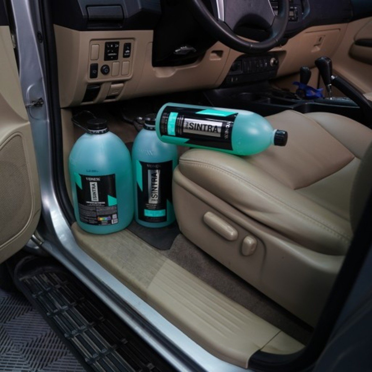 Sua fórmula avançada proporciona alta eficiência na remoção de manchas de gordura e sujeiras diversas, ao mesmo tempo em que elimina microrganismos que podem causar doenças no interior do veículo. Além disso, Sintra Pro ajuda a reduzir odores indesejáveis, deixando o ambiente interno mais limpo, saudável e livre de impurezas.
